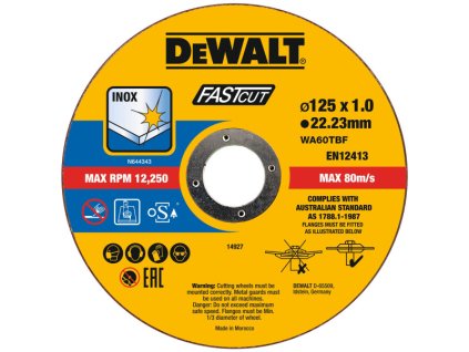 DEWALT Rezný kotúč na kov 125 x 1,0 x 22,2 mm inox WA60TBF vedro balenie (100 ks)