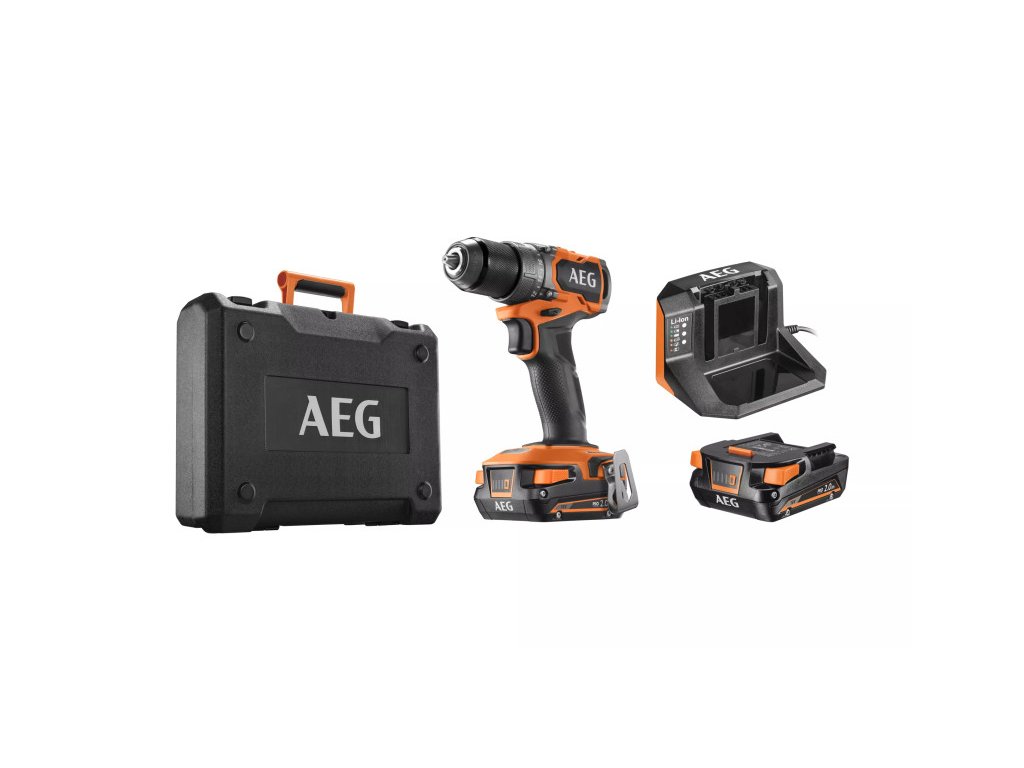 Aku vŕtačka AEG BS18SBL2-202C (bez uhlíkových kefiek) (2 x 2,0 Ah batérie + nabíjačka + puzdro)