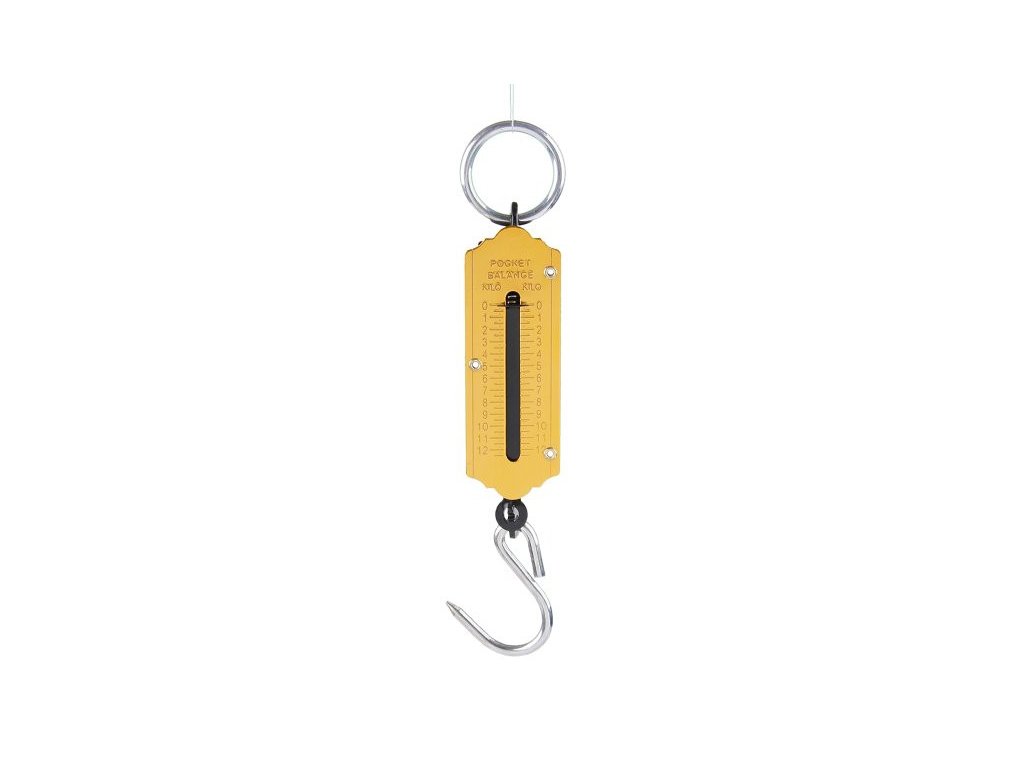 Portable spring scale for the field for fishermen, hunters, gardeners, etc. Maximum load: 12.5 kg.