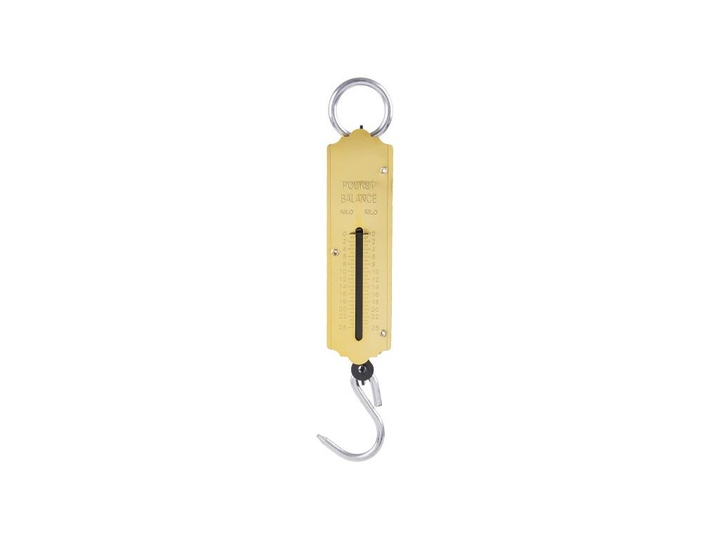 Portable spring scale for the field for fishermen, hunters, gardeners, etc. Maximum load: 25 kg.