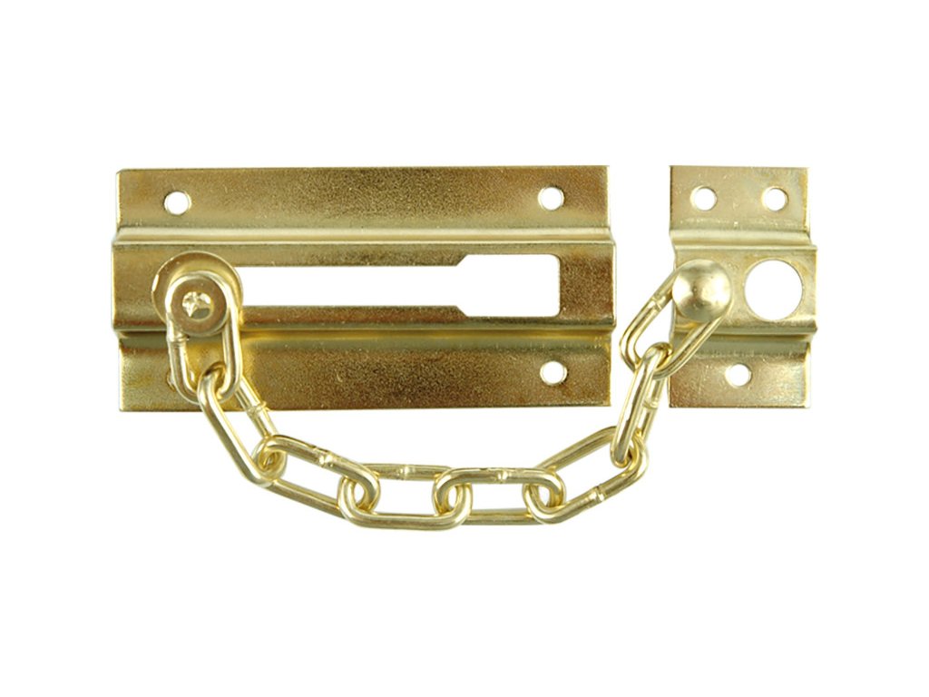 réz ajtólánc. Zár hossza 85mm, a lánc csempe hossza 24mm, a zár magassága 41mm, a lánc csempe magassága 41mm, lánc vastagsága 3mm, súly 67g További ajtóvédelem