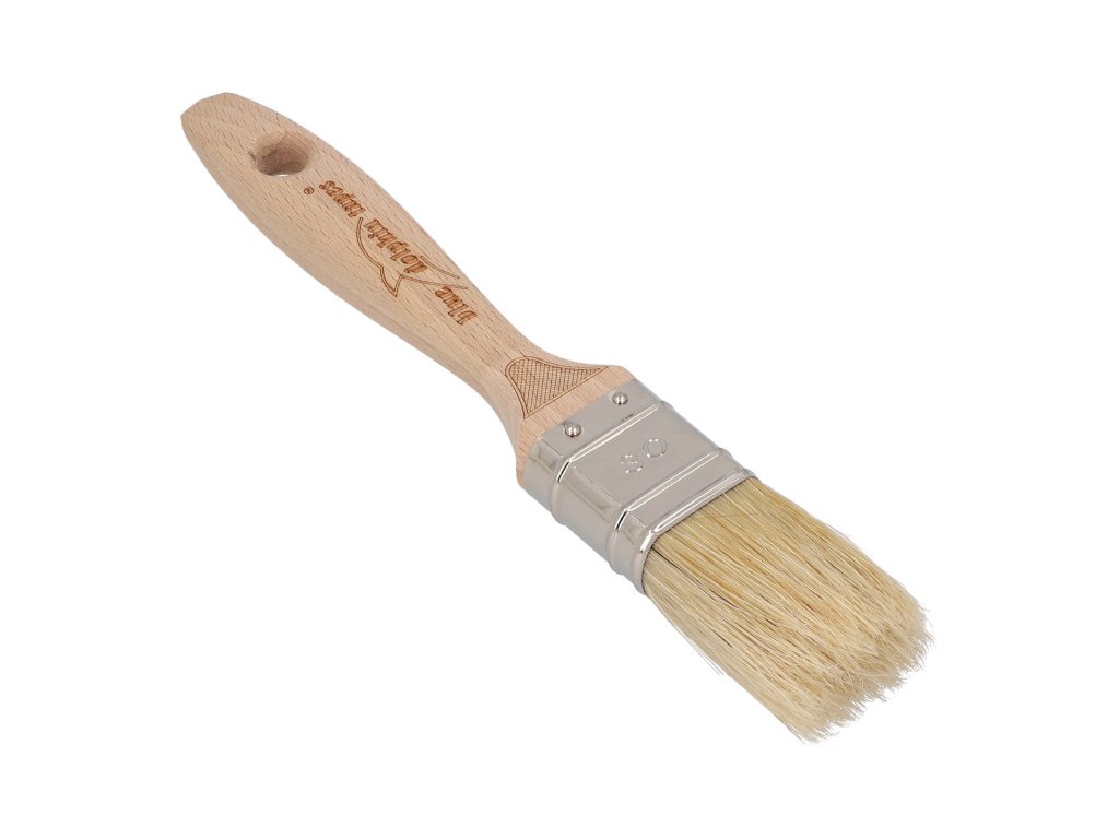 Dvojitý štetec Brush Dolphin je určený pre profesionálov, na maľovanie všetkými druhmi farieb a lakov Štetiny sú zmesou prírodných štetín s vláknami v tvare x, ktoré spĺňajú normu 90 TOPS Rukoväť dvojitej kefy Brush Dolphin je vyrobená z bukového dreva Objímka je poniklovaná Štandard 90 TOPS znamená, že 90 % štetín štetca je rovnakej dĺžky. vlákna