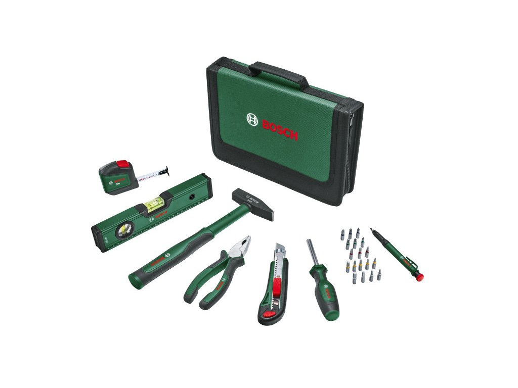 25 darabos készlet kombinált fogóval, univerzális csavarhúzóval, sniccerrel, kalapáccsal stb.