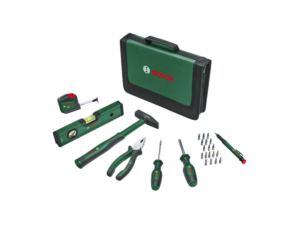 25 részes készlet kombinált fogóval, univerzális csavarhúzóval, vízmértékkel stb.