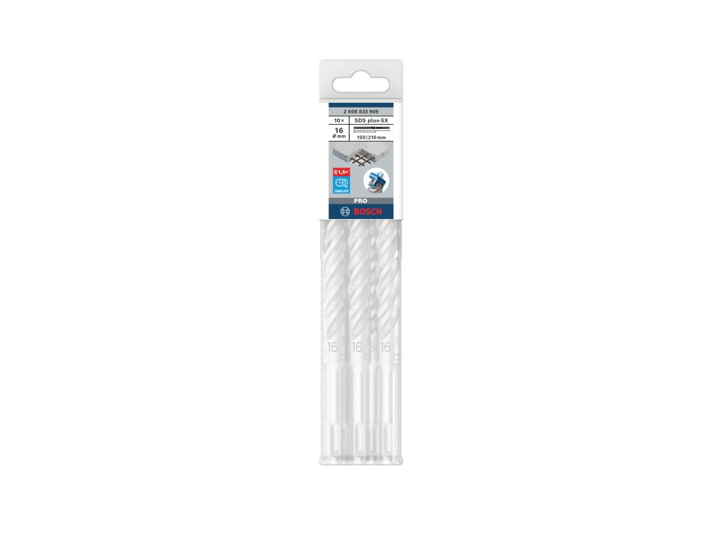 BOSCH 5X Vrták do betónu 16 x 210/150 mm štvorbritý SDS-Plus (10 ks)