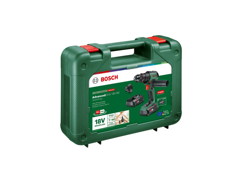 BOSCH Akumulátorový vŕtací skrutkovač AdvancedDrill 18V-80 Quicksnap v kufri 78 Nm (2 x 2,5 Ah + nabíjačka)