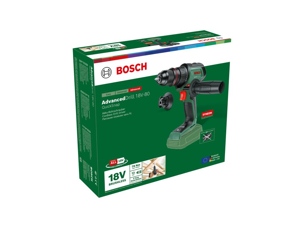 BOSCH Akumulátorový vŕtací skrutkovač AdvancedDrill 18V-80 Quicksnap v kufri 78 Nm (bez akumulátora a nabíjačky)