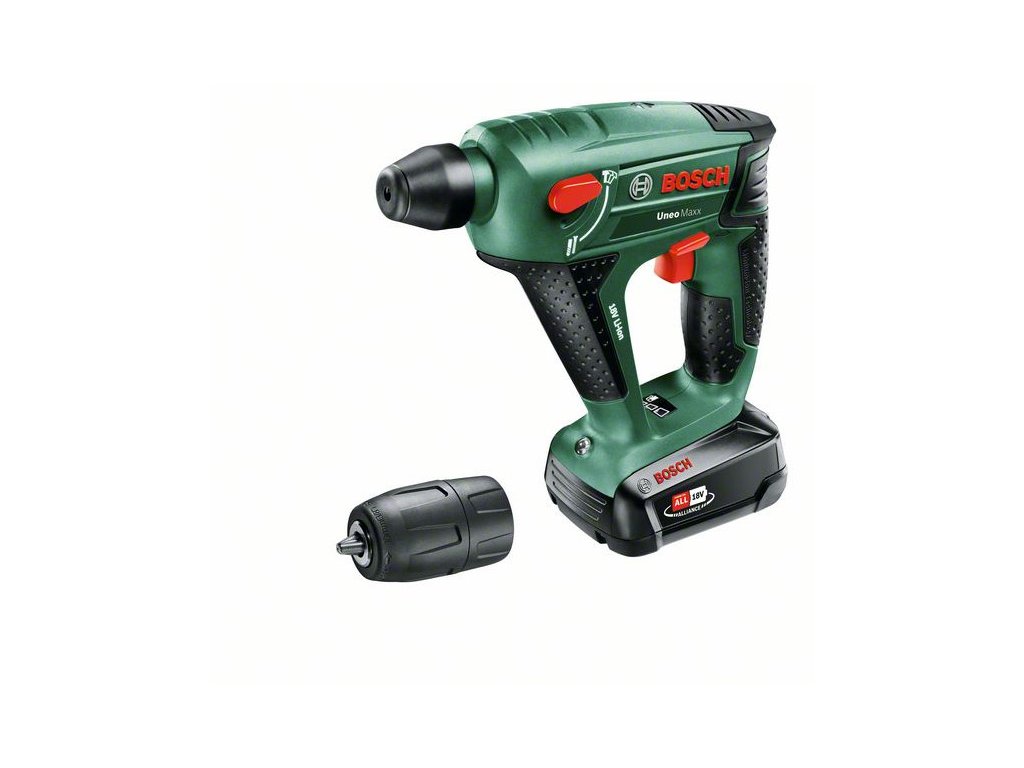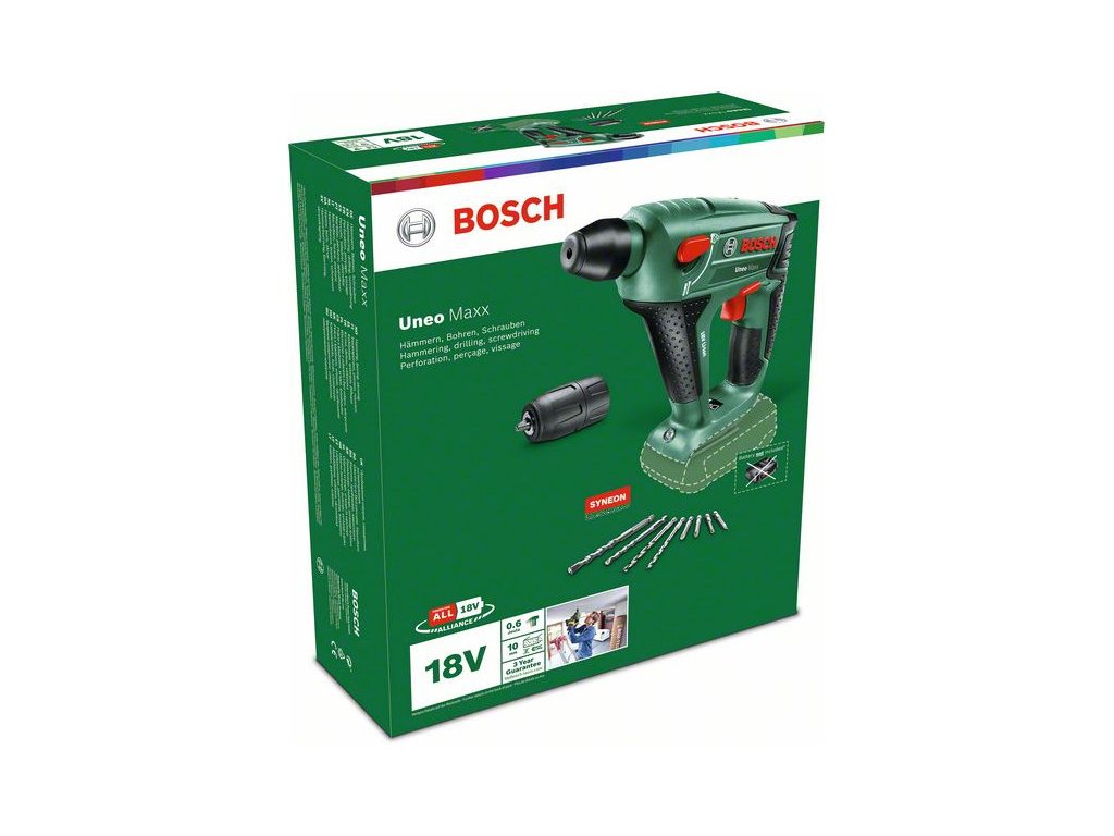 Az erőteljes és kompakt 3 az 1-ben Uneo Maxx akkus fúrókalapácsot a legnehezebb kalapácsfúrási, fúrási és csavarbehajtási feladatokra tervezték betonhoz, falazathoz, fémhez, fához és csempéhez. A Bosch pneumatikus ütőmechanizmus és az erős motor egyszerű és gyors fúrást tesz lehetővé betonban, akár 10 mm mélységig. SDS rendszerű tokmánnyal rendelkezik az 1/4"-os hatlapú és az SDS quick bitek felhasználóbarát használatához, valamint gyors, mindössze 3 másodperc alatt történő cseréjéhez. A kifejezetten könnyű (1,4 kg-os) és kompakt erőművész kényelmesen használható a szűk helyeken is, és könnyedén elvégzi a különböző feladatokat – legyen szó betonban történő fúrásról vagy fába történő precíziós csavarbehajtásról. Ez a szerszám a POWER FOR ALL ALLIANCE rendszer része. Egyetlen akkumulátorral nagyszámú, különböző márkájú szerszám működtethető.