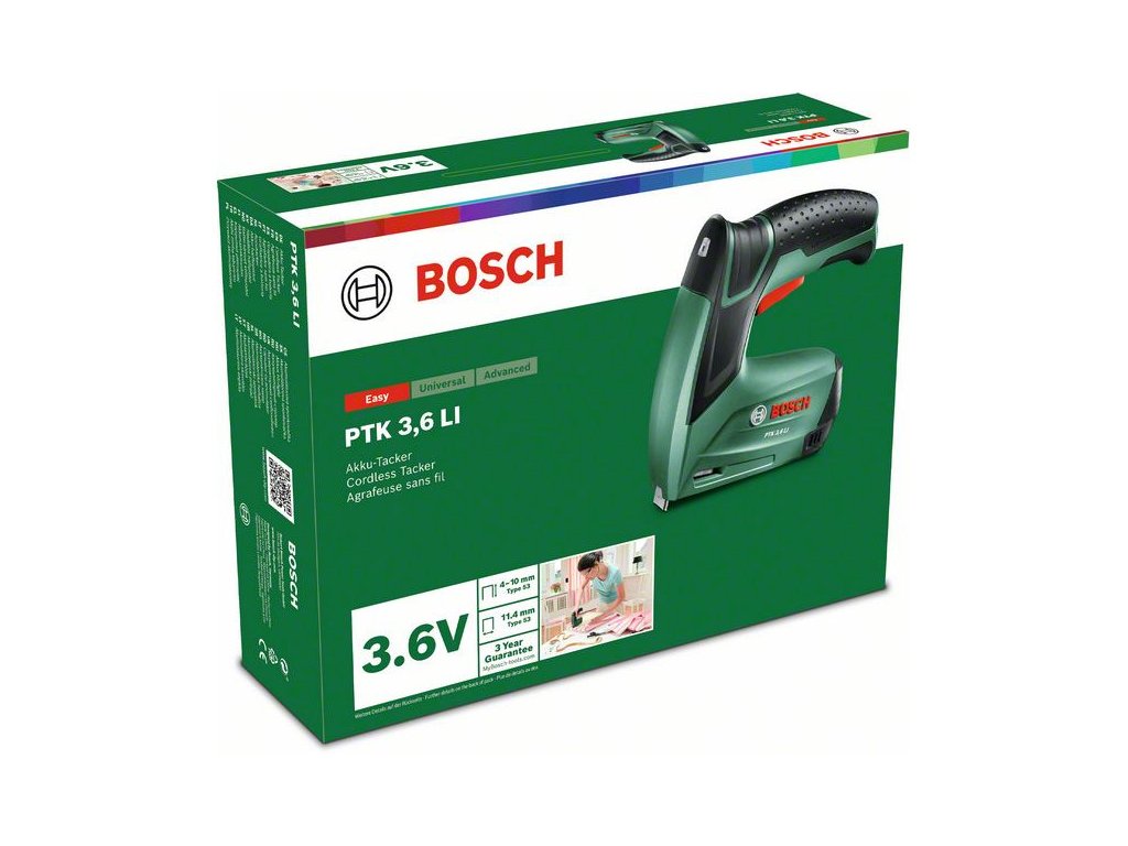 Ez a könnyű, akkus tűzőgép lítium-ion technológiát használ, és mind beltéri, mind kültéri használatra ideális. A töltési állapot kijelzésével elkerülhetők a töltés miatti késések. A PTK 3,6 LI a Push + Release rendszernek köszönhetően irányított munkát tesz lehetővé: egyszerűen nyomja a tűzőfejet a munkadarabra, majd nyomja meg a kapcsolót – így elkerülhető az önindítás veszélye. A töltöttségi szint kijelzése alapján könnyedén tájékozódhat arról, hogy mikor kell kapcsot betölteni. A PTK 3,6 LI beépített 3,6 V-os lítium-ion akkumulátorral rendelkezik, és ideális különböző anyagok – például textília és kartonpapír – puhafa felületre történő rögzítéséhez.