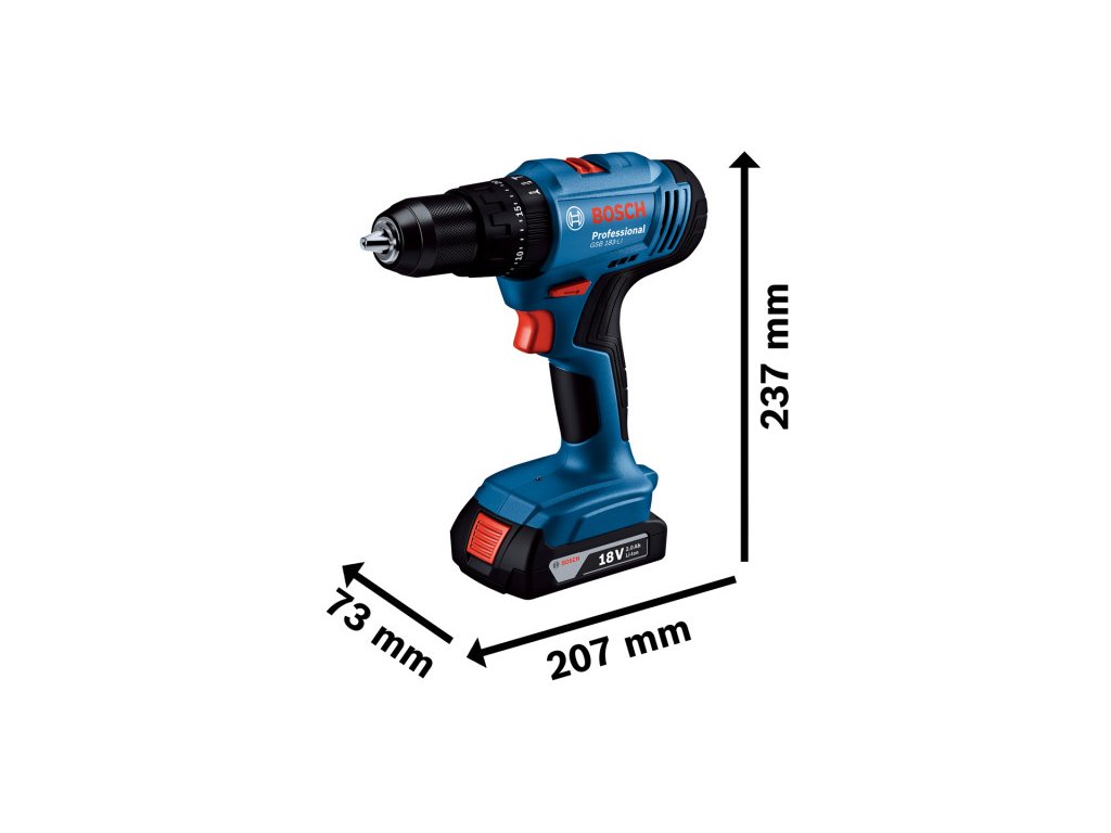 BOSCH Akumulátorový príklepový vŕtací skrutkovač GSB 183-LI v kufri (2 x 2,0 Ah + nabíjačka)