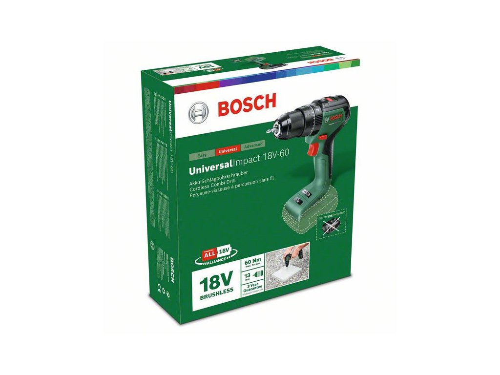 BOSCH Akumulátorová príklepová vŕtačka UniversalImpact 18V-EC 60 Nm (bez akumulátora a nabíjačky)