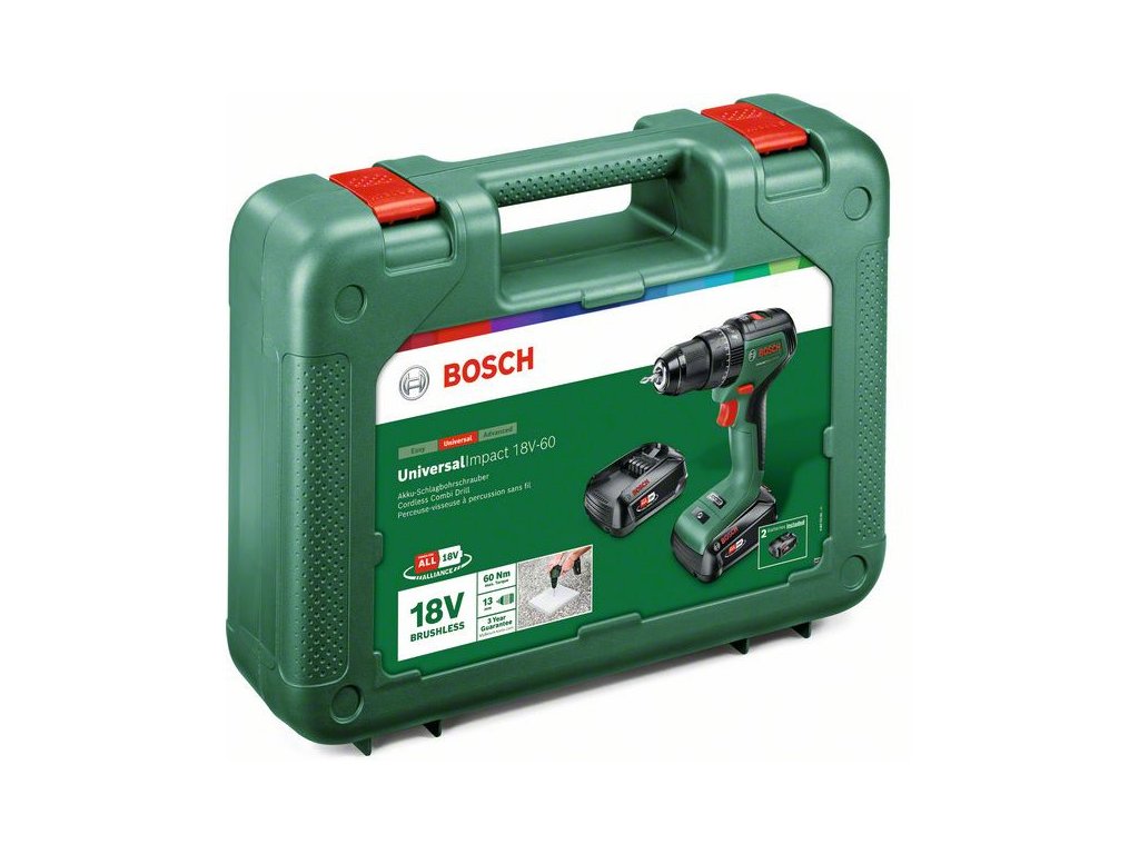 BOSCH Akumulátorová príklepová vŕtačka UniversalImpact 18V-EC 60 Nm v kufri (2 x 2,0 Ah + nabíjačka)