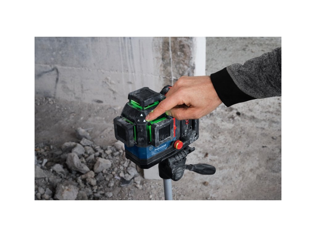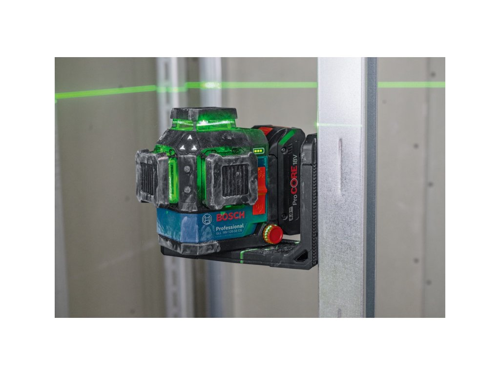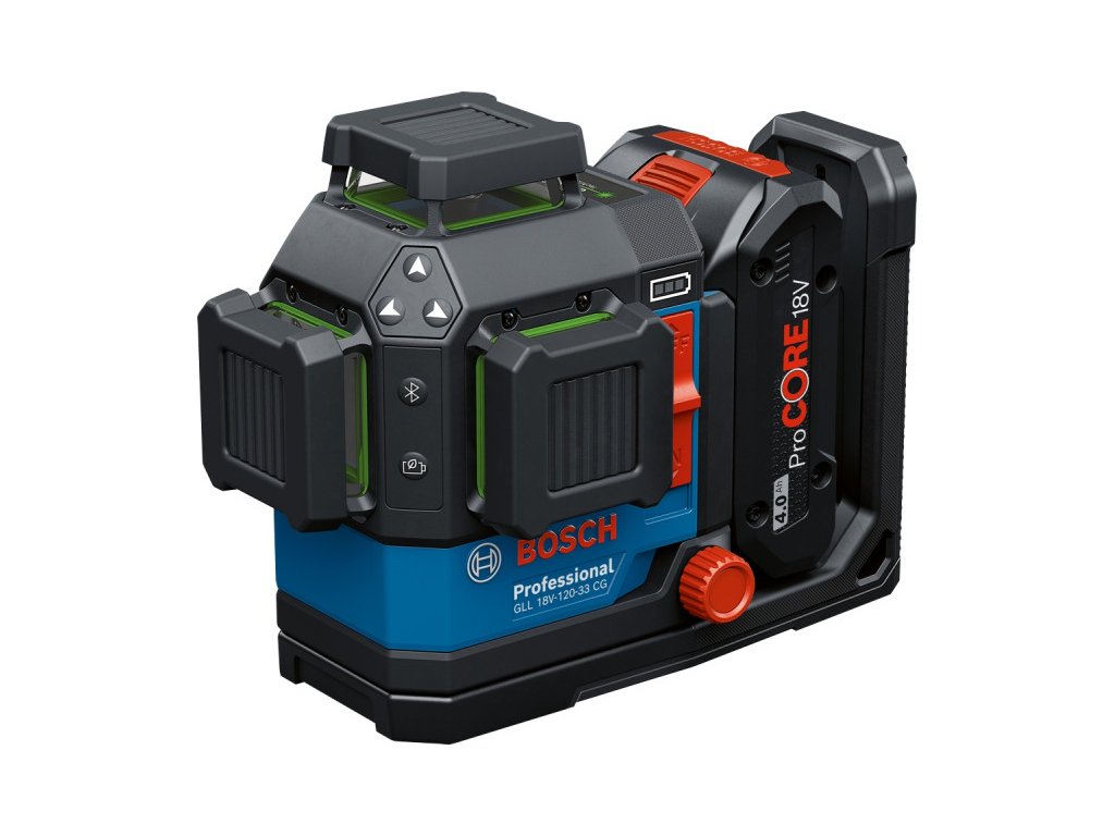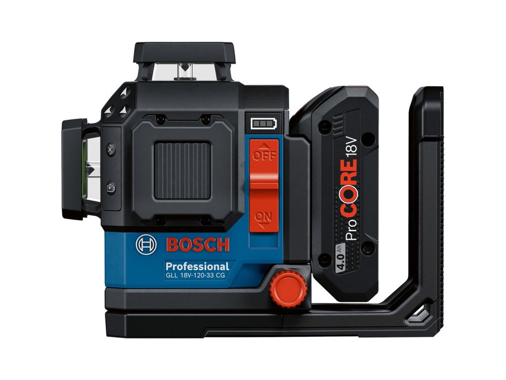 A GLL 18V-120-33 CG Professional az építőipari szakemberek számára megbízható precizitást biztosít a legkeményebb munkakörülmények között is. A háromféle áramforrás elve lehetővé teszi a váltást a 18 V-os és 12 V-os platform között, valamint alkáli C-cellák is használhatók az állásidők elkerülése érdekében, hogy a feladatra lehessen koncentrálni. Ez a robusztus vonallézer gumírozott burkolattal és IP65 védettséggel rendelkezik, így munkavégzés közben nem kell aggódni a víz, por és ütések miatt. A könnyebb munkavégzéshez a lézeren háttérvilágítású billentyűzet található a lézervonalak egyenkénti kiválasztásához, a beépített, erős mágnessel rendelkező talppal pedig gyorsan és biztonságosan rögzíthető. A lézervonal finombeállítással a függőleges vonal a referenciapont elvesztése nélkül módosítható.