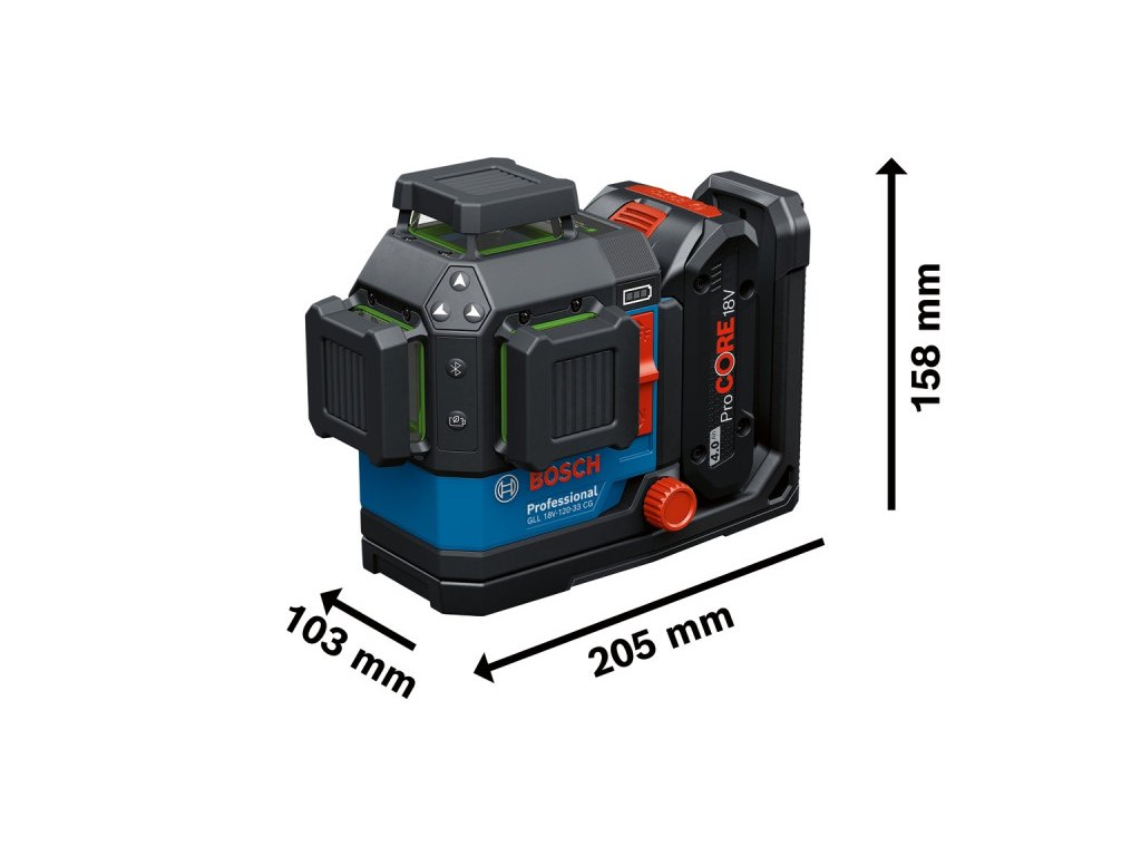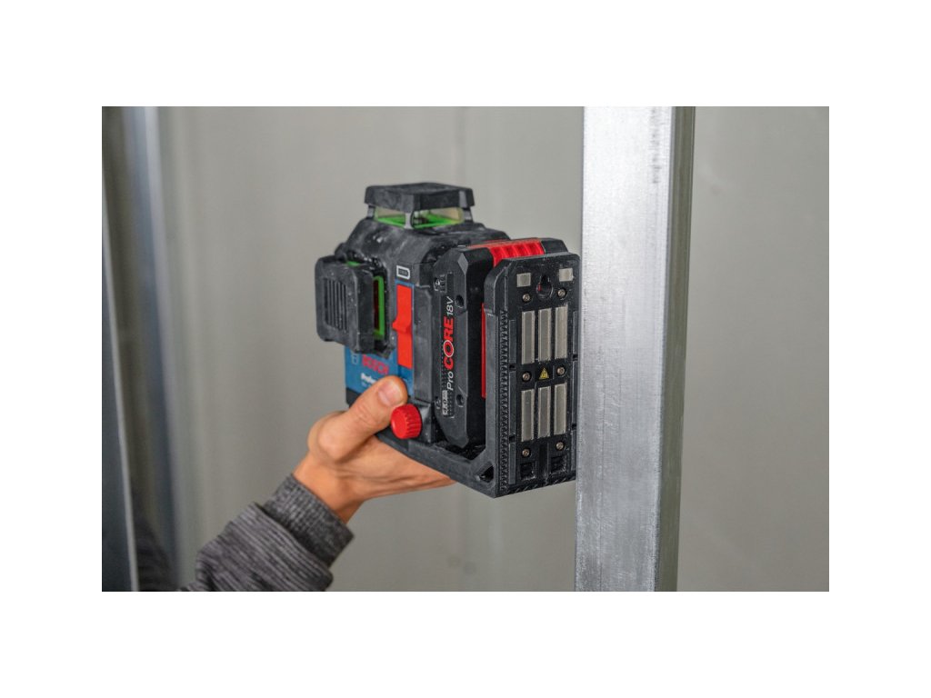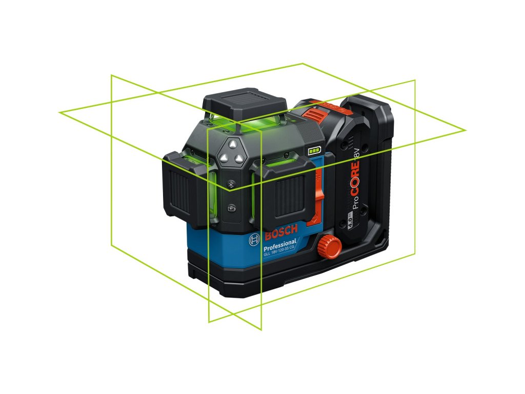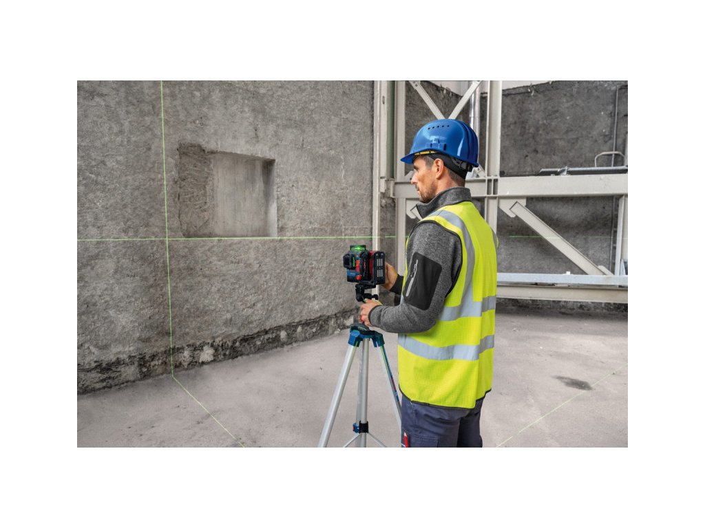 A GLL 18V-120-33 CG Professional az építőipari szakemberek számára megbízható precizitást biztosít a legkeményebb munkakörülmények között is. A háromféle áramforrás elve lehetővé teszi a váltást a 18 V-os és 12 V-os platform között, valamint alkáli C-cellák is használhatók az állásidők elkerülése érdekében, hogy a feladatra lehessen koncentrálni. Ez a robusztus vonallézer gumírozott burkolattal és IP65 védettséggel rendelkezik, így munkavégzés közben nem kell aggódni a víz, por és ütések miatt. A könnyebb munkavégzéshez a lézeren háttérvilágítású billentyűzet található a lézervonalak egyenkénti kiválasztásához, a beépített, erős mágnessel rendelkező talppal pedig gyorsan és biztonságosan rögzíthető. A lézervonal finombeállítással a függőleges vonal a referenciapont elvesztése nélkül módosítható.