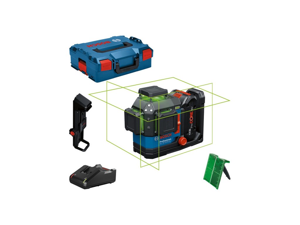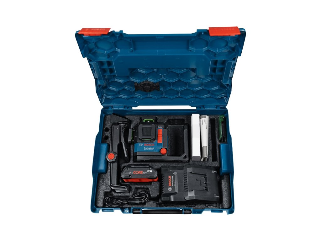 Szállítási terjedelem: L-BOXX 136 (1 600 A01 2G0), 1 x ProCORE18V 4.0Ah akkumulátor (1 600 A01 6GB), GAL 18V-40 Professional gyorstöltő (1 600 A01 9RJ), DK 20 Professional mennyezeti csíptető (1 608 M00 C4C), Lézer céltábla