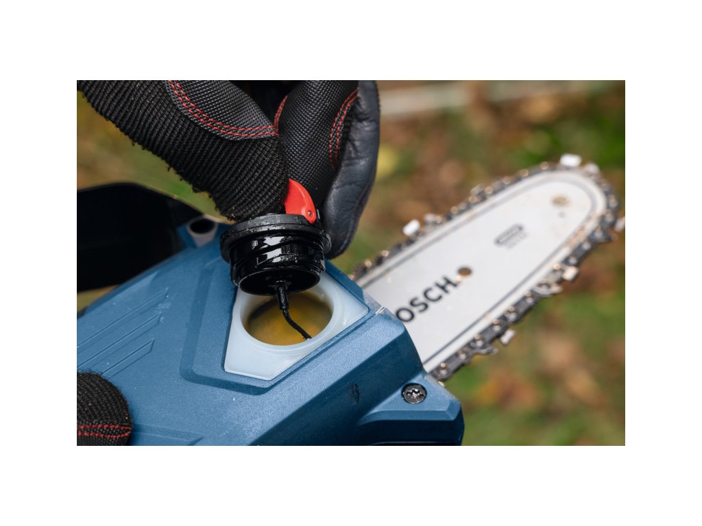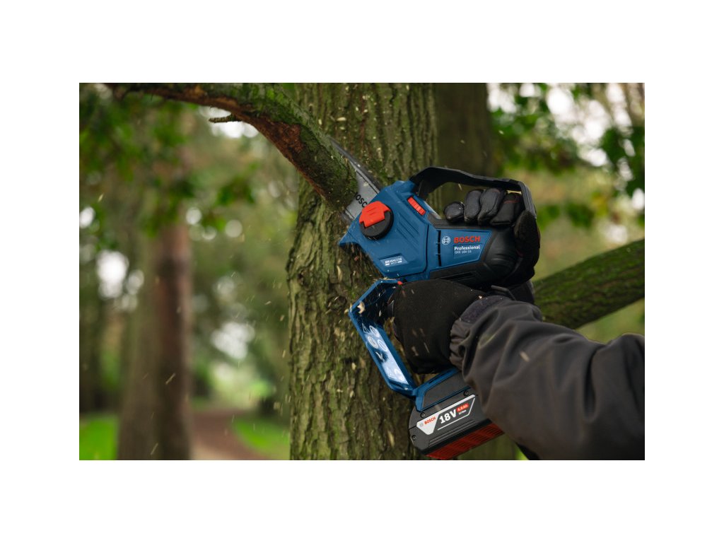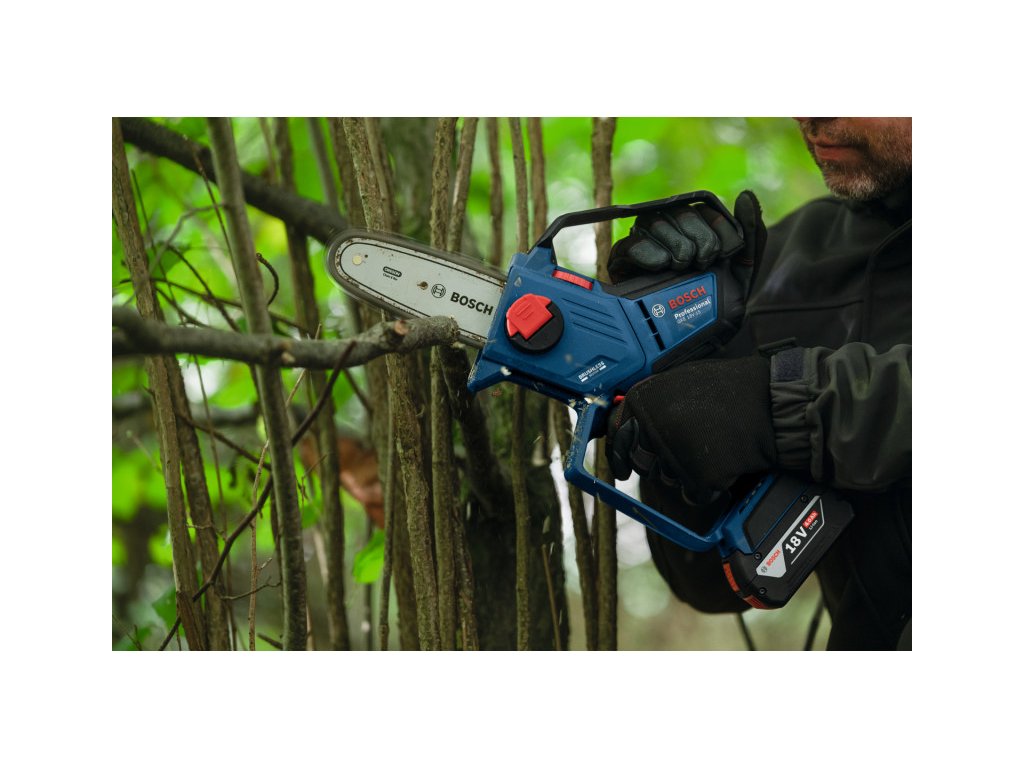 - A láncfűrészek nagyok és nehézkesek lehetnek, különösen szűk helyeken végzett munka esetén. A Bosch GKE 18V-15 Professional akkus ágvágó könnyű és kompakt, tökéletes a nehezen elérhető helyeken végzett feladatok elvégzéséhez. Szénkefe nélküli motorja nagy teljesítményt és hosszú élettartamot biztosít. Az automatikus olajozási funkció tovább növeli a teljesítményt a lánc kenésével. Ezt az ágvágót is a továbbfejlesztett irányítás szem előtt tartásával tervezték: giroszkóppal van felszerelve, amely figyeli a mozgást, és aktiválja a láncféket, ha potenciális visszarúgást észlel.