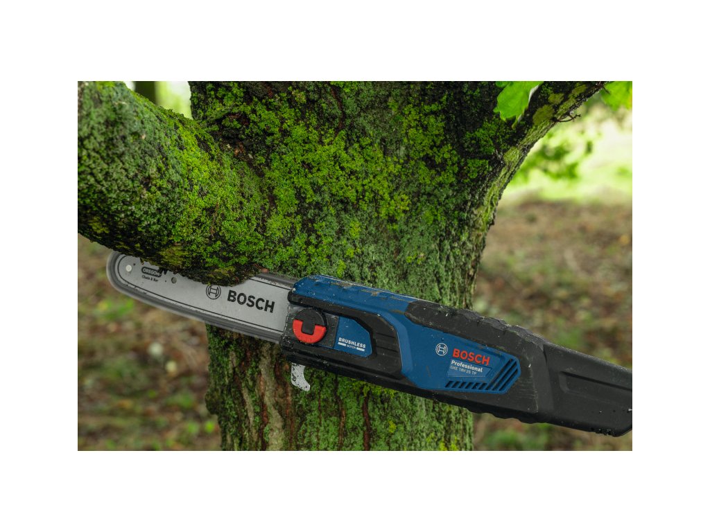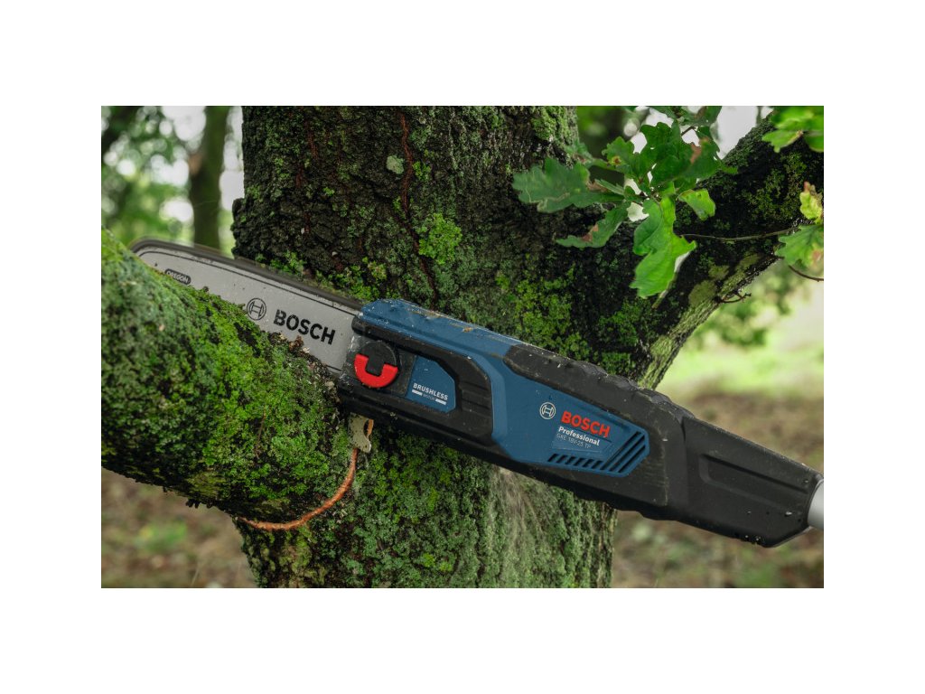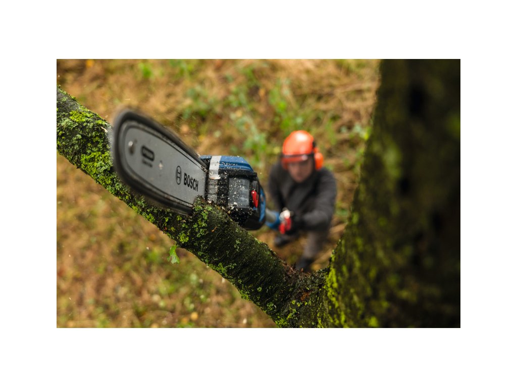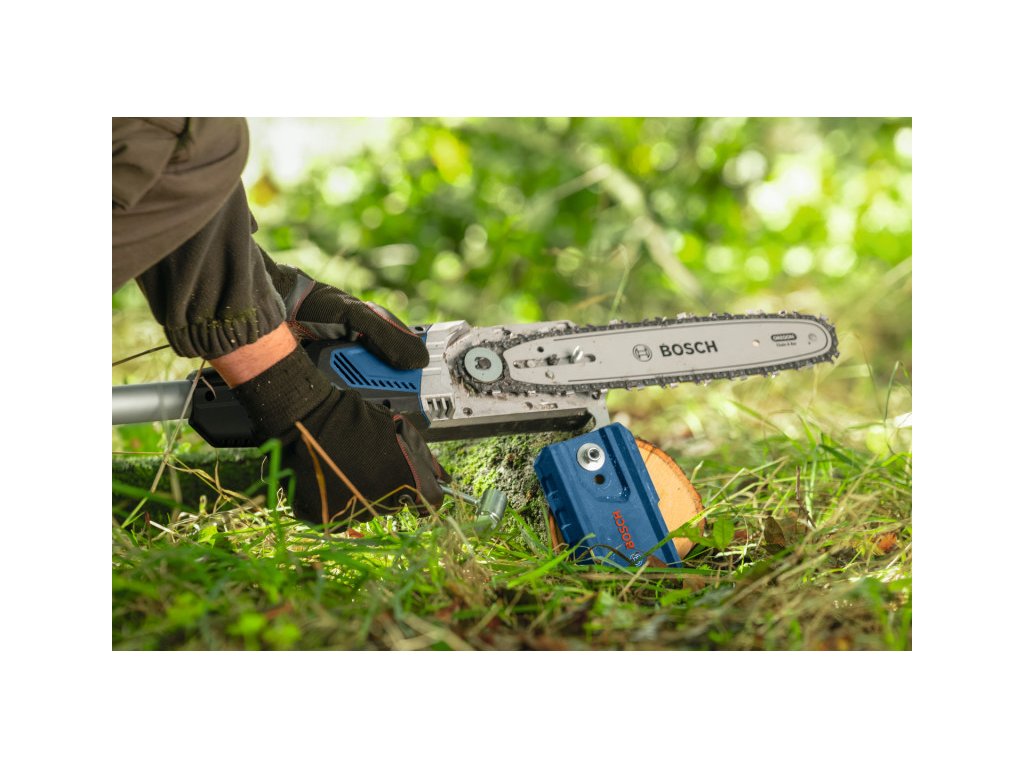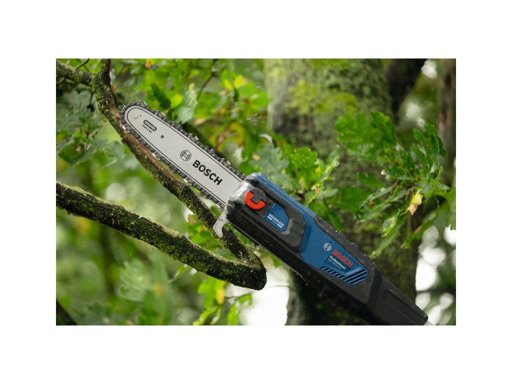 - GKE 18V-25 TP Professional teleszkópos ágvágó egyszerű indítási eljárással, alacsony karbantartási igénnyel és hosszú élettartammal. Töltésenként akár 130 vágásra képes a 18 V-os és 5,5 Ah-s ProCORE akkunak köszönhetően, valamint alacsony, 97 dBa zajszinttel rendelkezik. Kiváló minőségű, 0,325-ös osztású Oregon lánccal és 25 cm hosszú fűrészlappal rendelkezik a pontos metszés érdekében. A szerszám elején található ághorog segítségével a tömörebb részek is könnyedén vághatók. A szerszám kipufogógázok kibocsátása nélkül használható, és két részre szedhető az egyszerű szállítás érdekében.