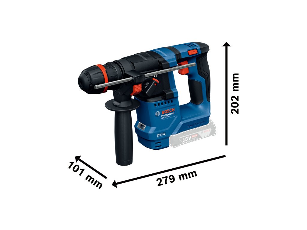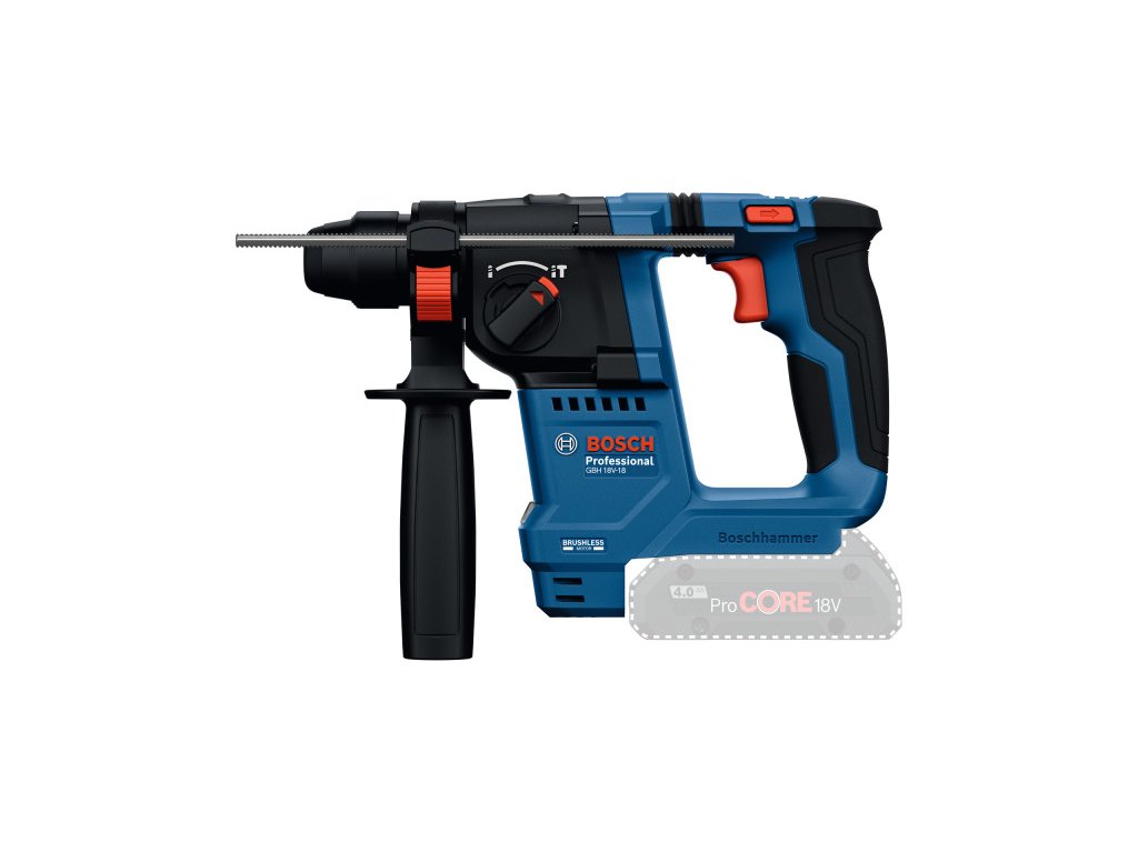 A Bosch GBH 18V-18 Professional fúrókalapács ideális olyan szakemberek számára, mint a bútorszerelők, asztalosok, üvegesek és létesítménykezelők, akik betonnal, fával és fémmel dolgoznak. Ez a legkönnyebb Bosch Professional akkus fúrókalapács a 18 V-os kínálatban, amely egy mindössze 18 V-os, 2,0 Ah-s akkumulátorral is maximális teljesítményt nyújt.