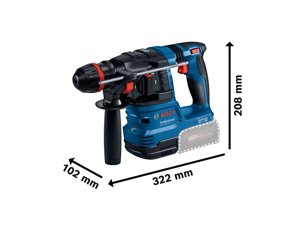 A GBH 18V-22 X Professional erejének és jellemzőinek köszönhetően új szintre emeli a fúrás élményét – még nagyobb hatékonyság, biztonság és irányítás. Egy töltéssel több furat készíthető, és a hatékony, állandó fordulatszámú, szénkefe nélküli Bosch 18V motor révén stabil teljesítményt nyújt. A felhasználó fokozott védelme véletlen elakadáskor és mérsékelt rezgés a KickBack Control és a Vibration Control funkcióknak köszönhetően. Emellett pormentes munkakörülményeket is biztosít a csatlakoztatható Auto Power GDE 18V-12 / GDE 12 elszívóval. ONECHUCK tokmánnyal, amely az egyetlen tokmány, amelybe SDS plus és hengeres/hatszögletű fúrófejek is illeszthetők a legkülönbözőbb alkalmazásokhoz