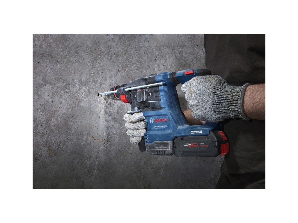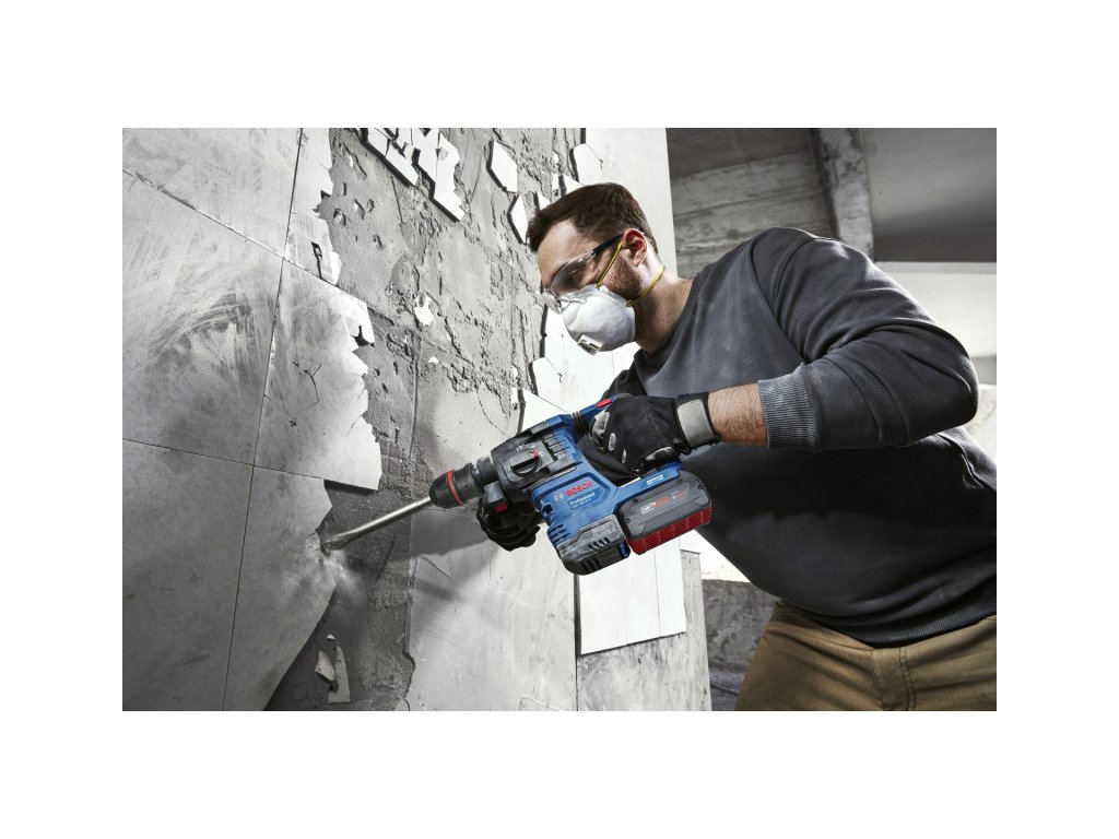 A GBH 18V-22 X Professional kategóriájában kiválóan teljesít beton és tégla kalapácsfúrása és vésése, valamint fa és acél fúrása terén a ONECHUCK tokmánynak köszönhetően. Egyszerűbb és hatékonyabb munkavégzés állandó sebesség és minimális rezgés mellett, pormentes környezetben.