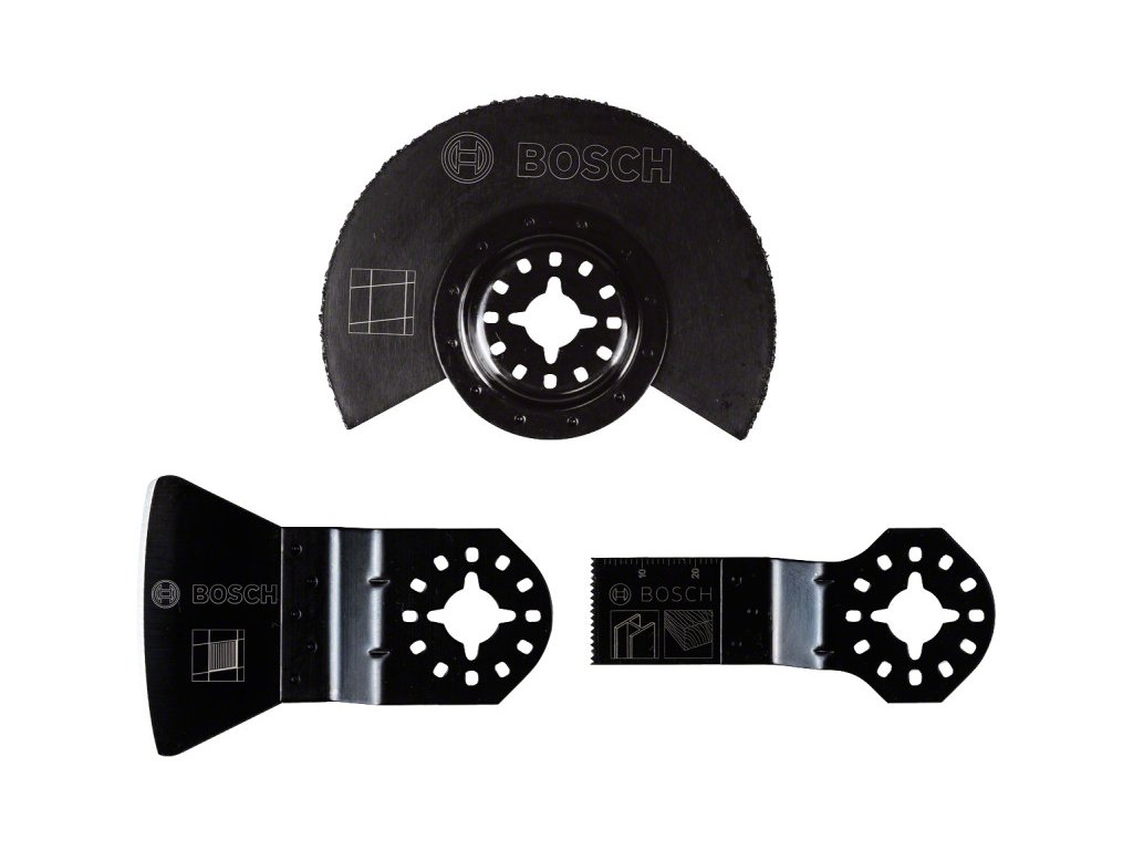 A készlet tartalma: Bimetál merülőfűrészlap fémhez, AIZ 20 AB (1 db), HCS hántoló, ATZ 52 SC (1 db), HM-RIFF szegmens fűrészlap, ACZ 85 MT4 (1 db)