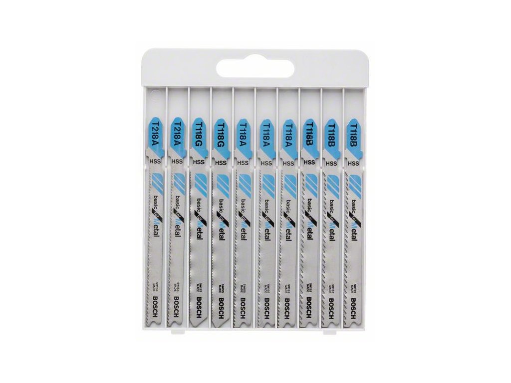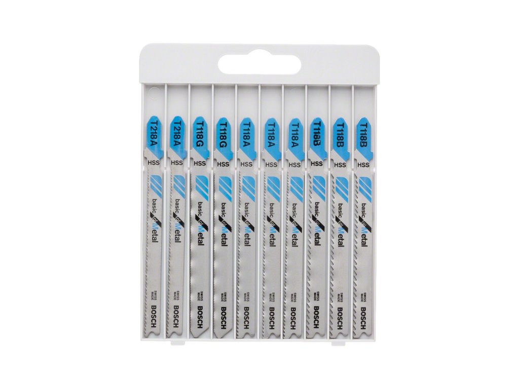 Na rezanie kovov - 10-dielna sada priamočiarych pílových listov Basic for Metal v kovovom boxe je vhodná na rezanie kovu Jej pílové listy sú ideálne na rezanie pevných kovových plechov a sú vhodné aj na rezanie kovových rúr a profilov Pílové listy je možné použiť pre priamočiare píly s jednootvorovým nástavcom stopky Vhodné pre všetky priamočiare píly s T stopkou