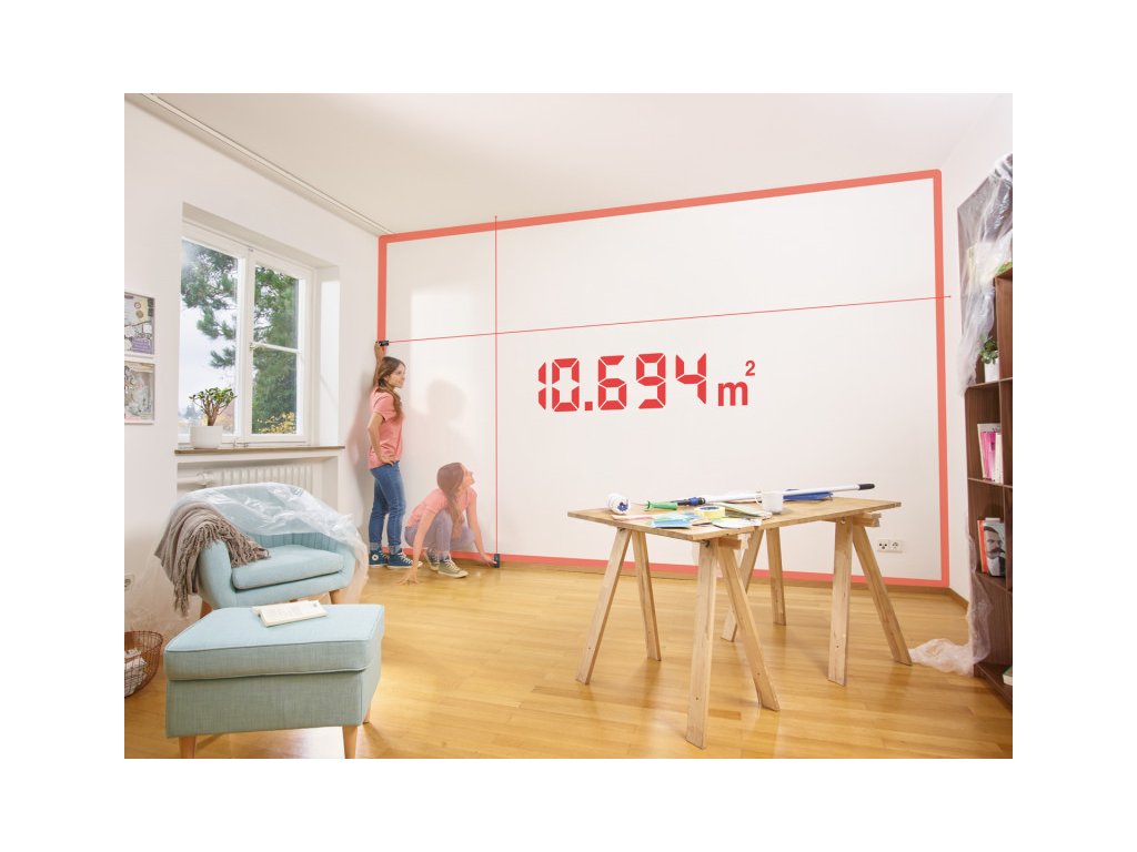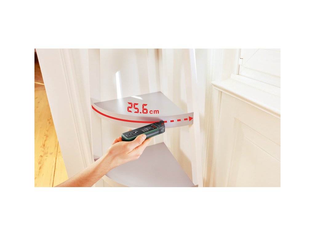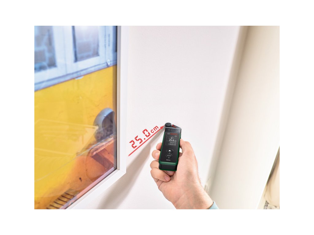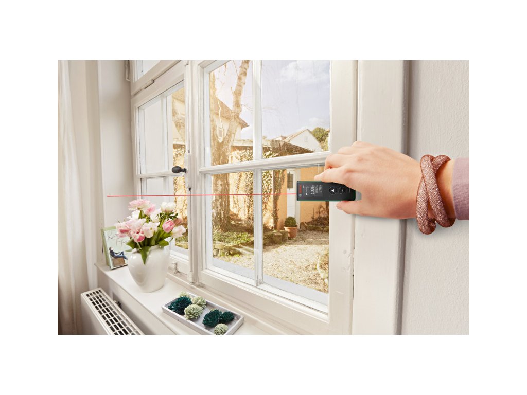- Magasság, hosszúság és más távolságok precíz mérése a Bosch lézertechnológiájával.