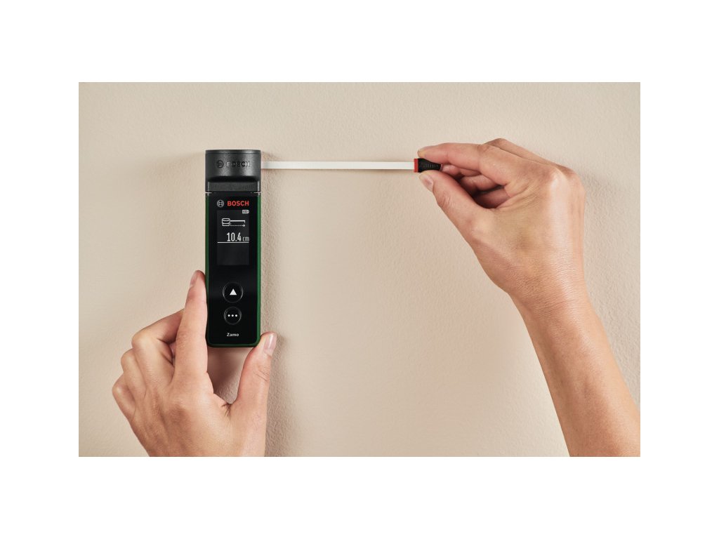 A Zamo lézeres mérőműszerrel egyszerűen meghatározható a szoba hossza és magassága a bútorok elrendezéséhez, illetve felújításkor kiszámítható a padló- vagy festékszükséglet. Csak el kell helyezni, rámutatni egy pontra, majd a gomb megnyomásával a Zamo precízen megméri a távolságot akár 25 méterig. Kiszámítja a négyzetmétert is, így nagyon praktikus a tapéta-, padlóigény és más anyagszükséglet kiszámításához. A nagyobb kényelem érdekében ez az egyszerűen használható mérőműszer további mérési funkciókkal is rendelkezik a három, külön megvásárolható, kényelmes adapter használatával: szintezőadapter képek és más tárgyak szintezéséhez, görgőadapter ívek és egyenetlen felületek méréséhez, és egy 1,5 méteres mérőszalag-adapter szabadon álló tárgyak és kerületek méréséhez. A Zamo használata közben nem kell minden mért értéket felírni, hiszen a műszer intelligens módon menti a 10 legutóbbi mérést. Ez a praktikus lézeres mérőműszer mindig friss és használatra kész: a beépített USB-C® csatlakozó kényelmes töltést és szoftverfrissítést tesz lehetővé.