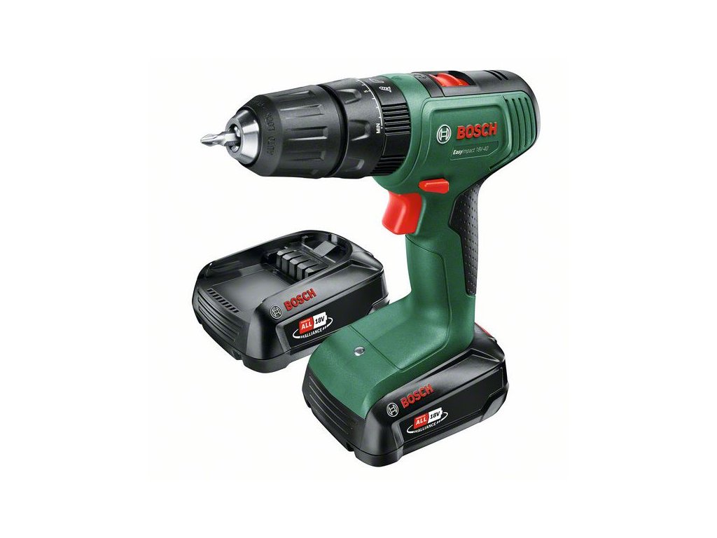 A kompakt EasyImpact 18V-40 sokoldalú szerszám csavarbehajtáshoz, fúráshoz és ütvefúráshoz. A kényelmes munkavégzéshez tervezett keskeny, ergonomikus fúró LED-világítással, 13 mm-es egyhüvelyes tokmánnyal, két fokozattal és 20 nyomatékszinttel rendelkezik a fémben, fában, műanyagban és falazatban történő egyszerű használathoz..