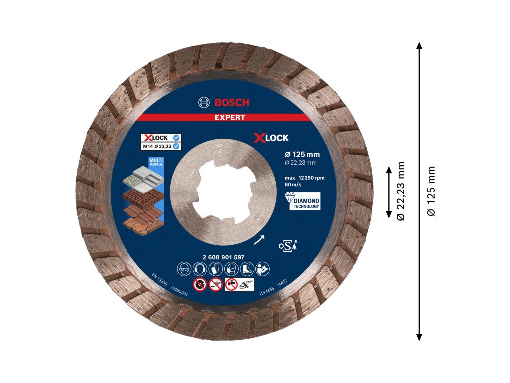 BOSCH EXPERT Gyémánt vágókorong 125 x 2,4 x 12 x 22,2 mm turbo Multi Material X-LOCK (oSa)