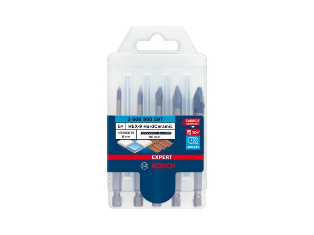 BOSCH EXPERT HEX-9 Csempefúrószár készlet 5 részes (6 db) pultra helyezhető display-ben