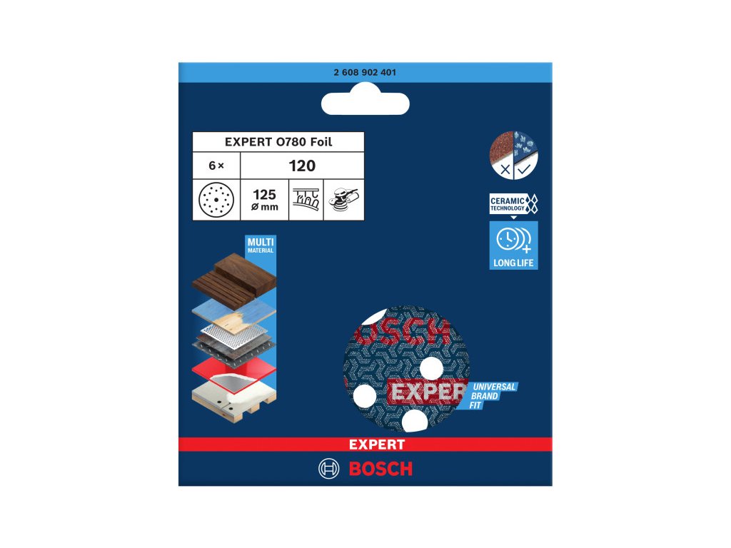 BOSCH EXPERT O780 Foil Tépőzáras csiszolótárcsa 125 mm / P120 kerámiaszemcsés (6 db)