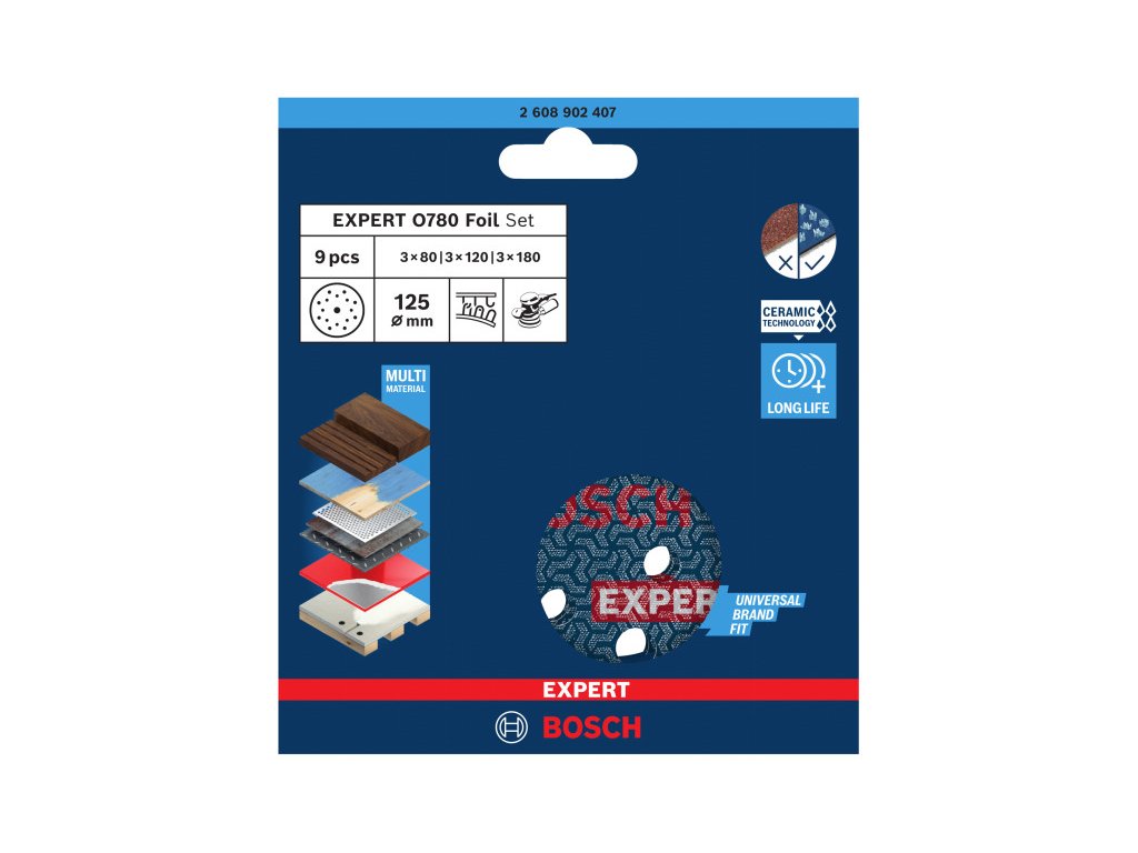 BOSCH EXPERT O780 Foil Tépőzáras csiszolótárcsa készlet 9 részes 125 mm kerámiaszemcsés