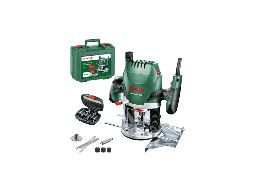BOSCH Horná frézka POF 1400 ACE + 6-dielna sada fréz v kufri / 1400 W