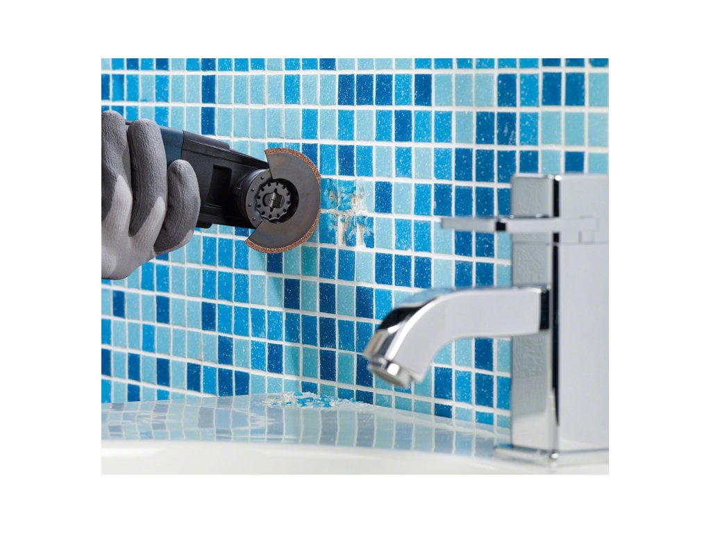 A fűrészlap 50-es szemcsenagyságú keményfém bevonatot kapott a nagy kopásállóság és az extrahosszú élettartam érdekében. A szegmens fűrészlap hegyes csúcsa szűk sarkokban is képes elvégezni a vágást, az íves test pedig az egyenes vágásokat teszi lehetővé. A Starlock Snap-In rögzítőrendszerrel gyorsan, 3 másodperc alatt kioldható és cserélhető a vágólap úgy, hogy nem kell kézzel megérinteni. A háromdimenziós gyorsbefogó-rendszernek köszönhetően a legjobb erőátvitel biztosított a gép és a szerszám között.