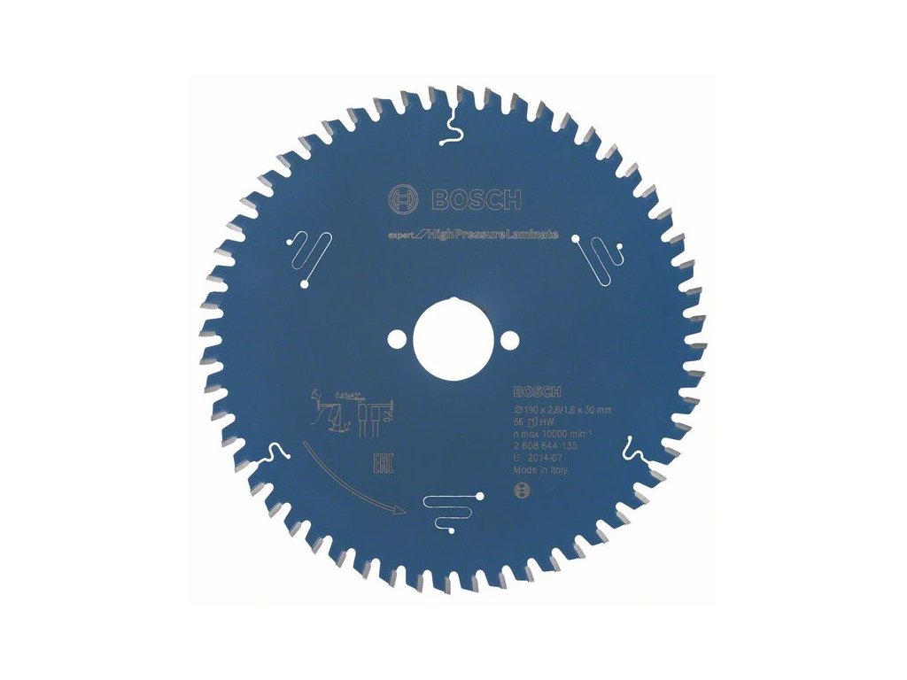 Az Expert for High Pressure Laminate körfűrészlap HLTCG (magas-alacsony háromszor forgácsoló köszörülésű) fogazata meglehetősen robusztus, így abrazív anyagok megmunkálásához használható