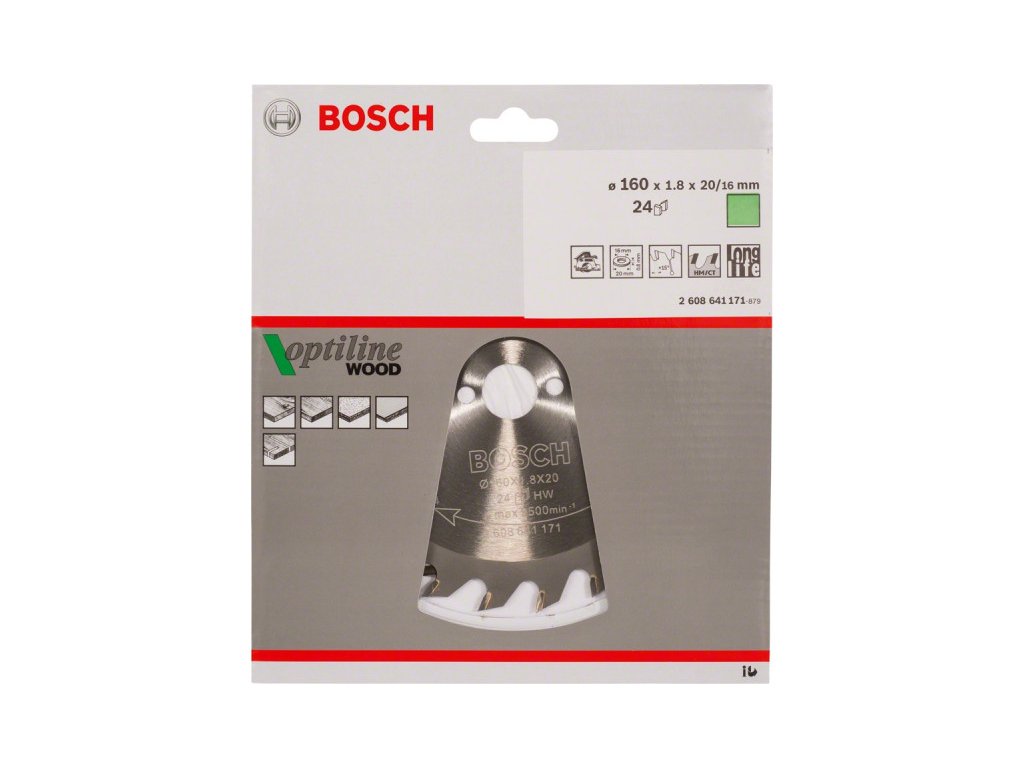 BOSCH Pílový kotúč na drevo 160 x 20/16 x 1,8 mm / 24T Optiline Wood ATB