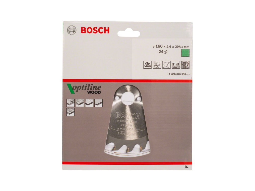 BOSCH Pílový kotúč na drevo 160 x 20/16 x 2,6 mm / 24T Optiline Wood ATB