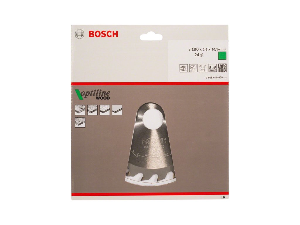BOSCH Pílový kotúč na drevo 180 x 30/20 x 2,6 mm / 24T Optiline Wood ATB