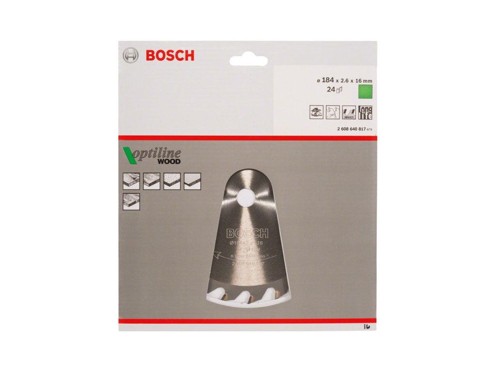 BOSCH Pílový kotúč na drevo 184 x 16 x 2,6 mm / 24T Optiline Wood ATB