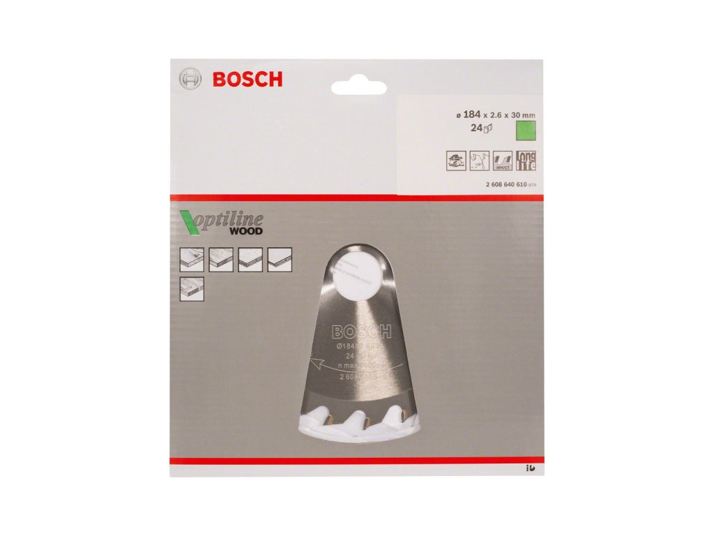BOSCH Pílový kotúč na drevo 184 x 30 x 2,6 mm / 24T Optiline Wood ATB