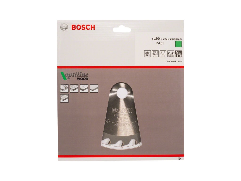 BOSCH Pílový kotúč na drevo 190 x 20/16 x 2,6 mm / 24T Optiline Wood ATB