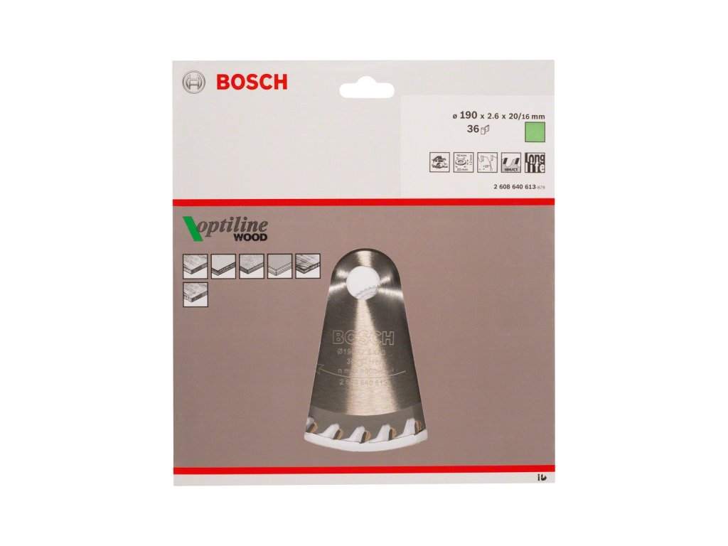 BOSCH Pílový kotúč na drevo 190 x 20/16 x 2,6 mm / 36T Optiline Wood ATB