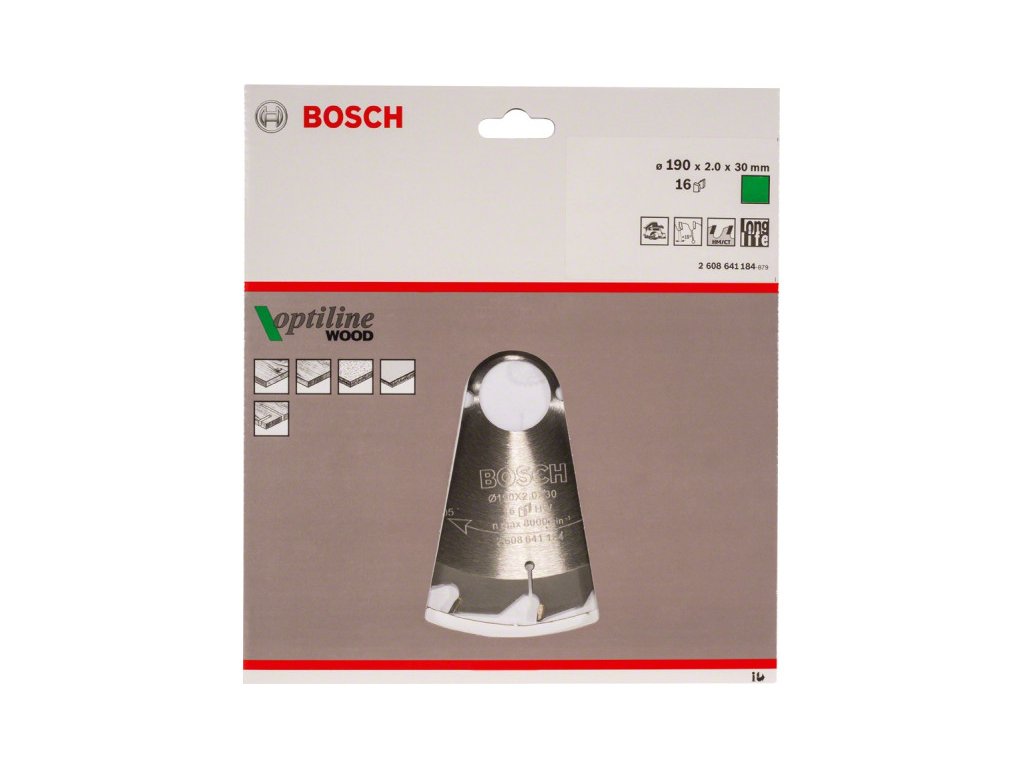 BOSCH Pílový kotúč na drevo 190 x 30 x 2,0 mm / 16T Optiline Wood ATB