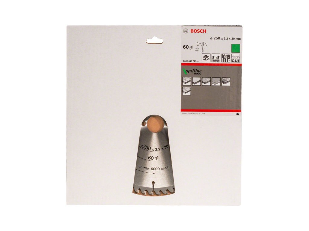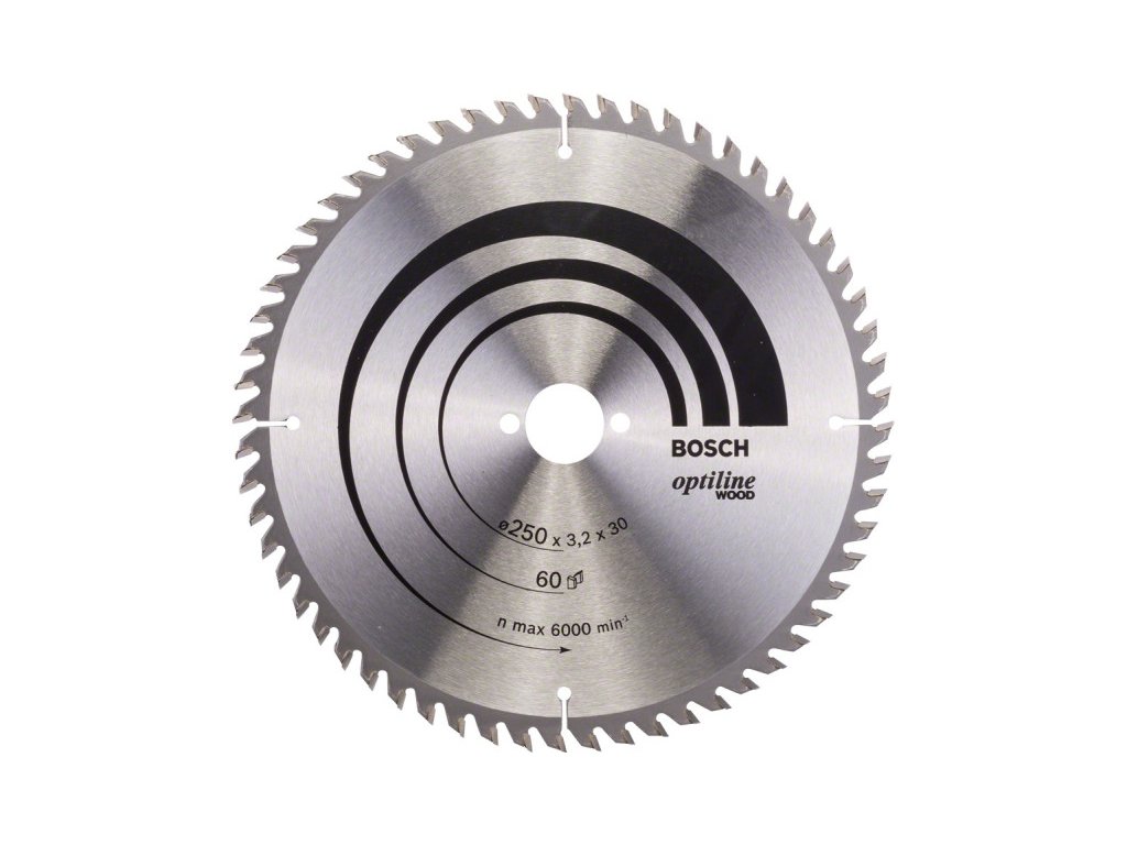 BOSCH Pílový kotúč na drevo 250 x 30 x 3,2 mm / 60T Optiline Wood ATB