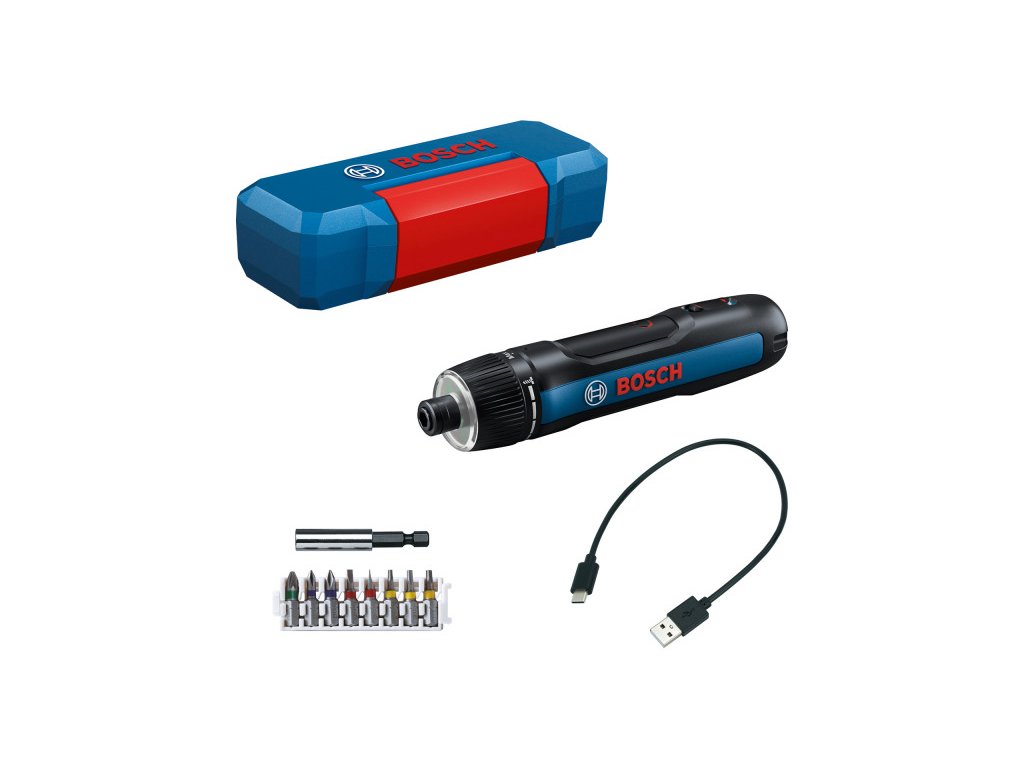 BOSCH GO Akumulátorový skrutkovač (s USB-C káblom) + sada bitov s 8 ks