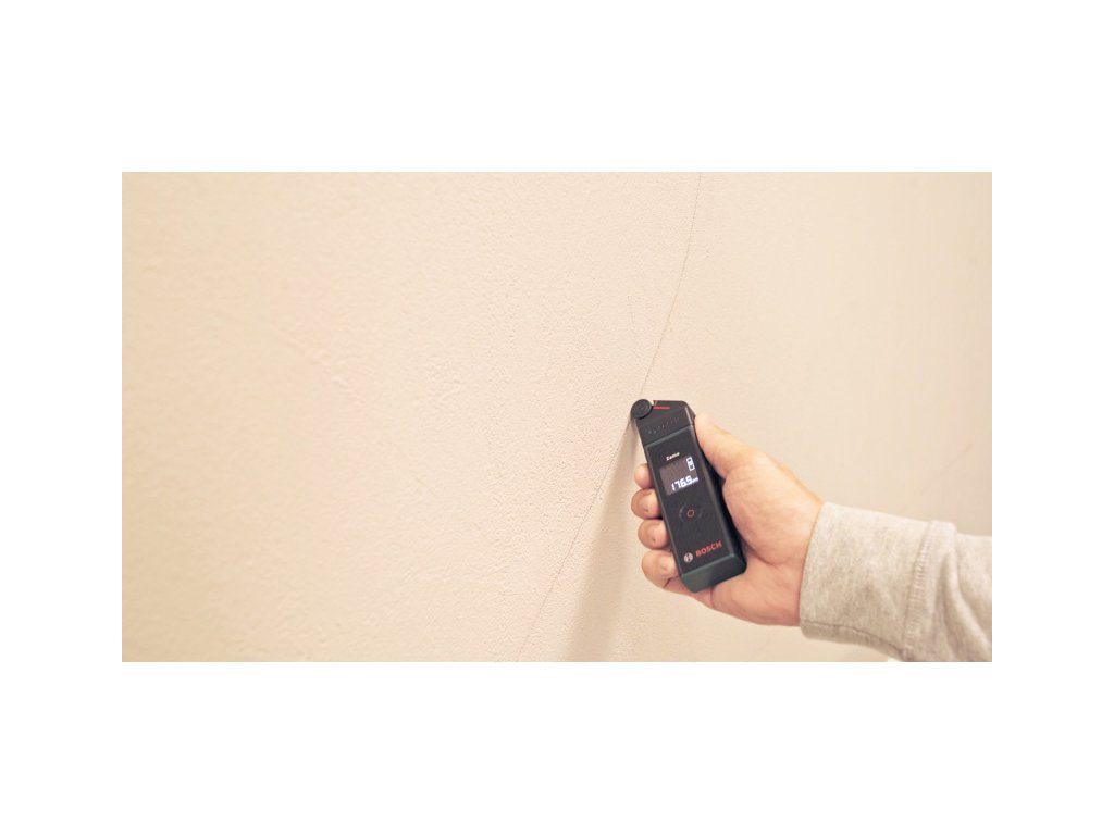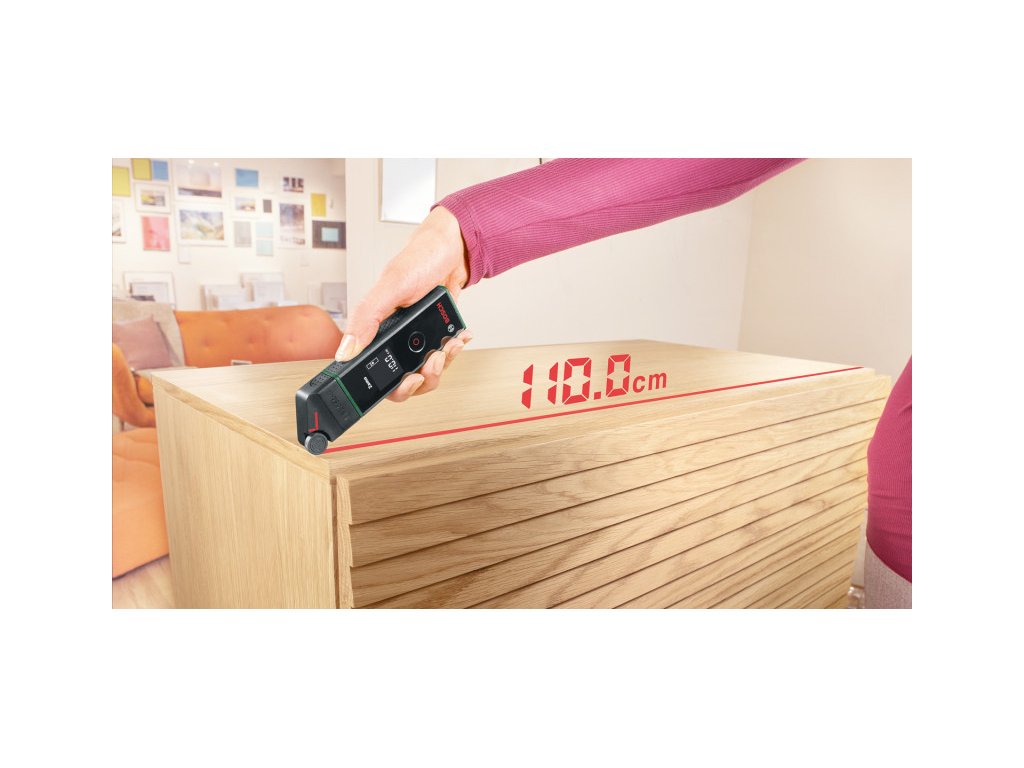 - A kerékadapterrel szabadon álló tárgyak és íves vagy szabálytalan felületek mérhetők gyorsan és egyszerűen. Különösen praktikus a kárpitozóanyag hosszának meghatározásához, vagy az otthoni elektromos berendezések és a házimozirendszer kábelhosszának kiszámításához is.