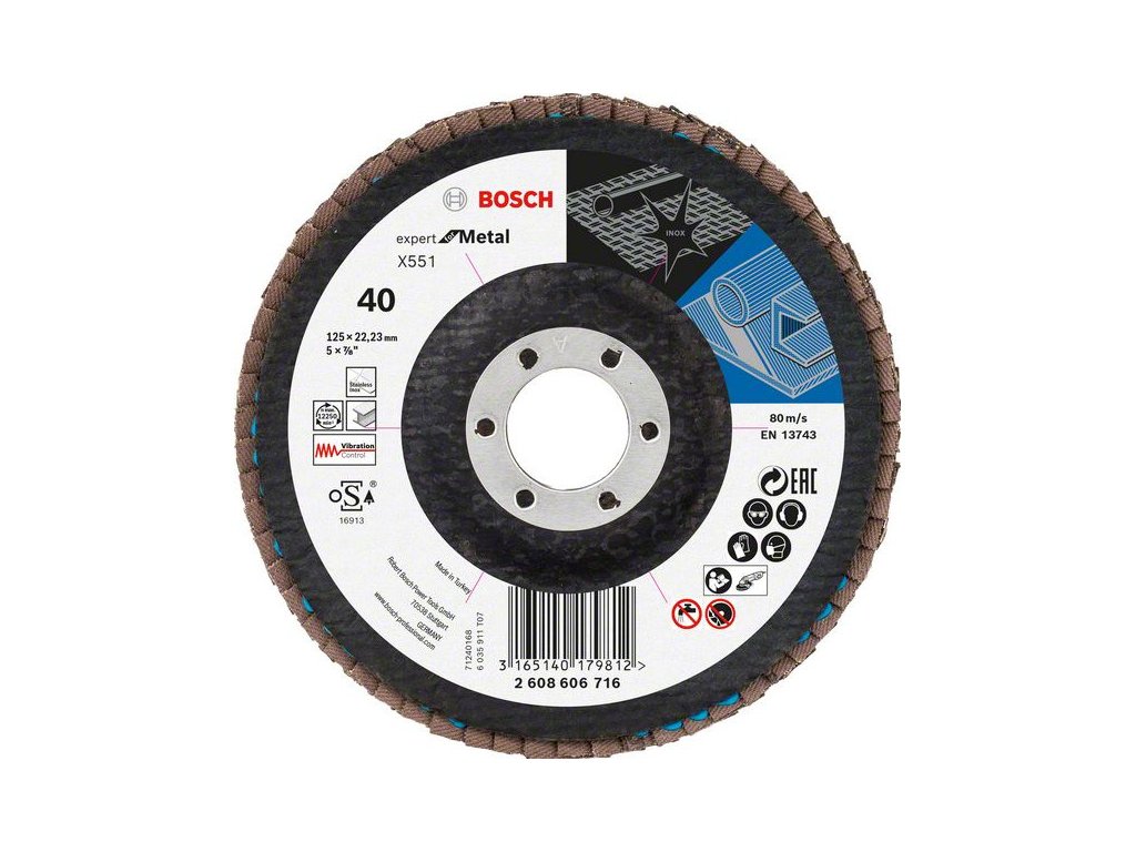BOSCH Lamellový brúsny kotúč kónický 125 x 22,2 / P40 Zirkón-korund X551 inox