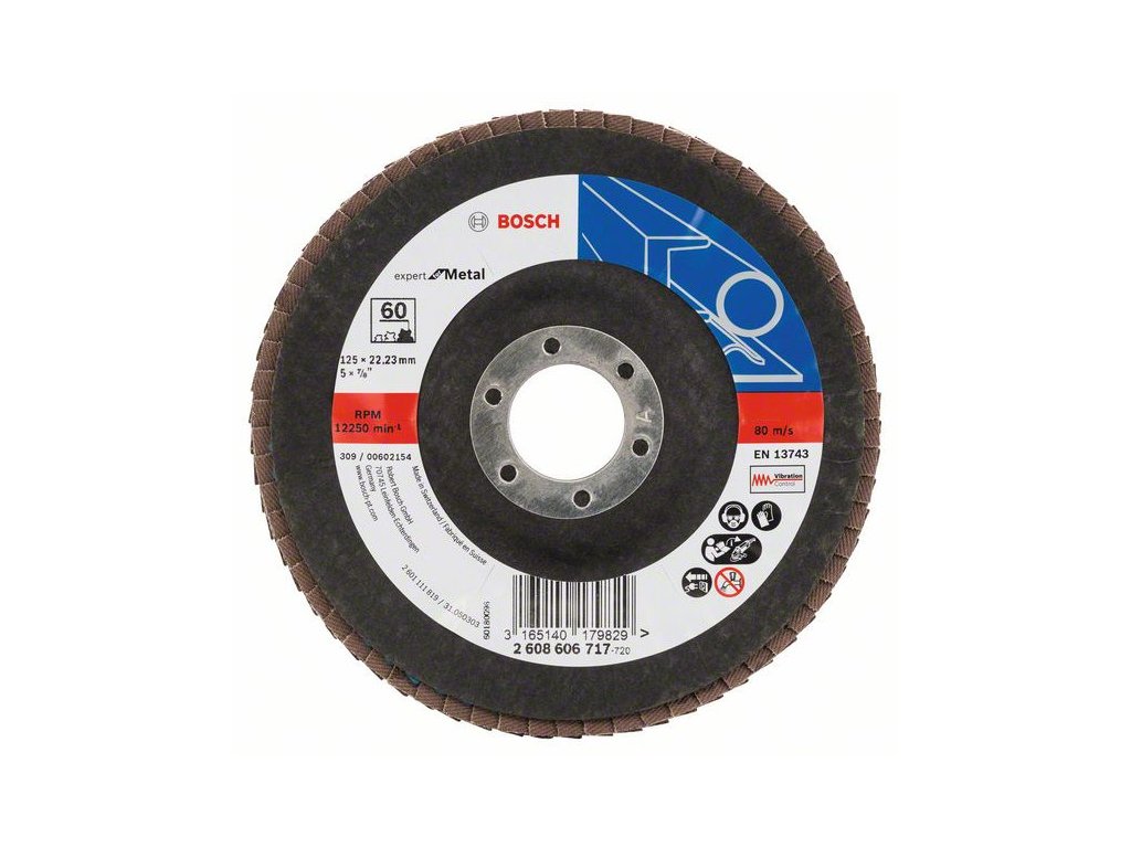 BOSCH Lamellový brúsny kotúč kónický 125 x 22,2 / P60 Zirkón-korund X551 inox