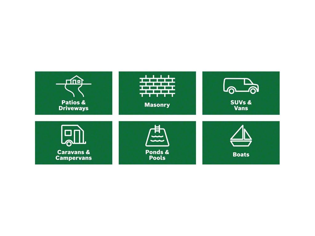 A különböző fúvókák sokoldalú tisztítási lehetőségeket kínálnak, melyek tökéletesek a makacs szennyeződések ellen.